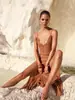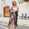 Vestido playero cruzado estilo europeo y americano de verano 2022 con estampado de leopardo y tirantes de gasa y efecto tie-dye.