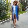 Nueva blusa de bikini playera tipo cárdigan sexy con estampado de vacaciones costeras transfronterizas europeas y americanas de gasa de longitud media y larga con protección solar