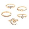 Nuevo Set de Anillos Transfronterizos Europeos y Americanos, Set de Combinación Personalizado de 5 Piezas con Corazón, 8 Caracteres, Estrella y Luna con Diamantes para Mujer