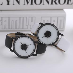 Reloj de cuero con manecilla invertida de personalidad de moda, reloj de pareja de moda, un par de relojes de cuarzo, relojes para mujer y hombre | |