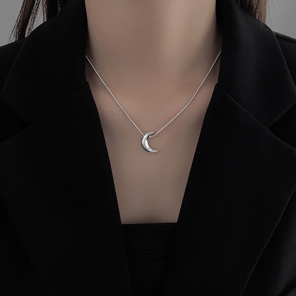 Collar de luna sencillo que combina con todo, estilo frío, para mujer, con cadena de clavícula, joyería