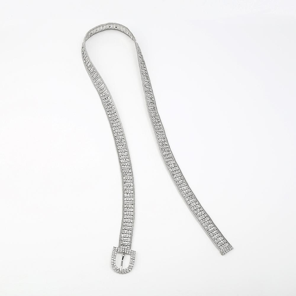 Cadena de cintura europea y americana Decoración de cintura de diamantes de imitación para mujer con falda Cinturón delgado Cinturón elástico con cuentas Venta al por mayor para mujer