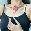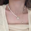 Collar de clavícula de lujo ligero japonés vintage de perlas y flores de piedra blanca, diseño de nicho suave, cadena de clavícula para mujer