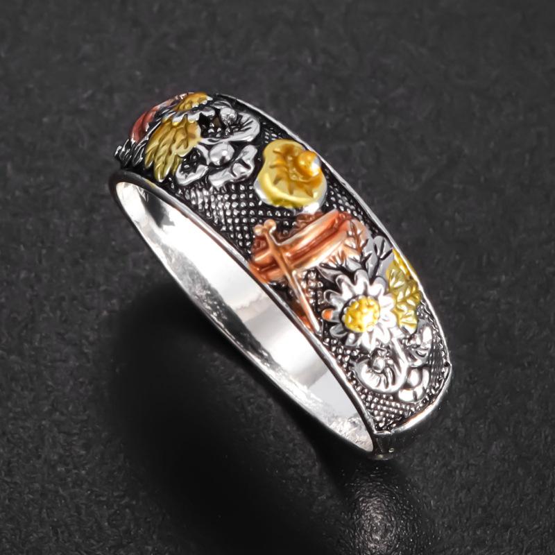 Longrui Venta Caliente Transfronteriza Anillo Retro Tallado Flor Libélula Girasol Fabricante Venta al por Mayor