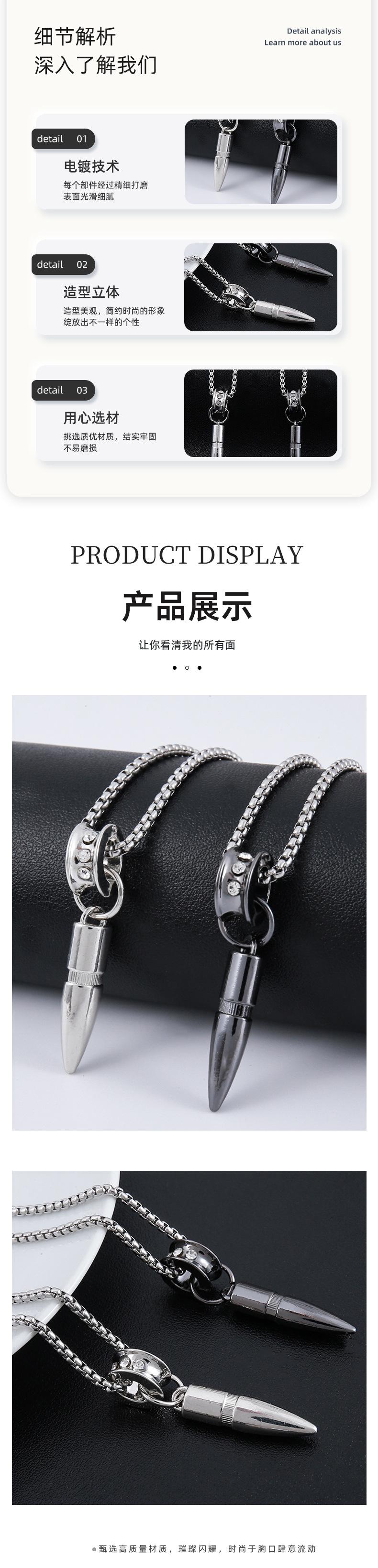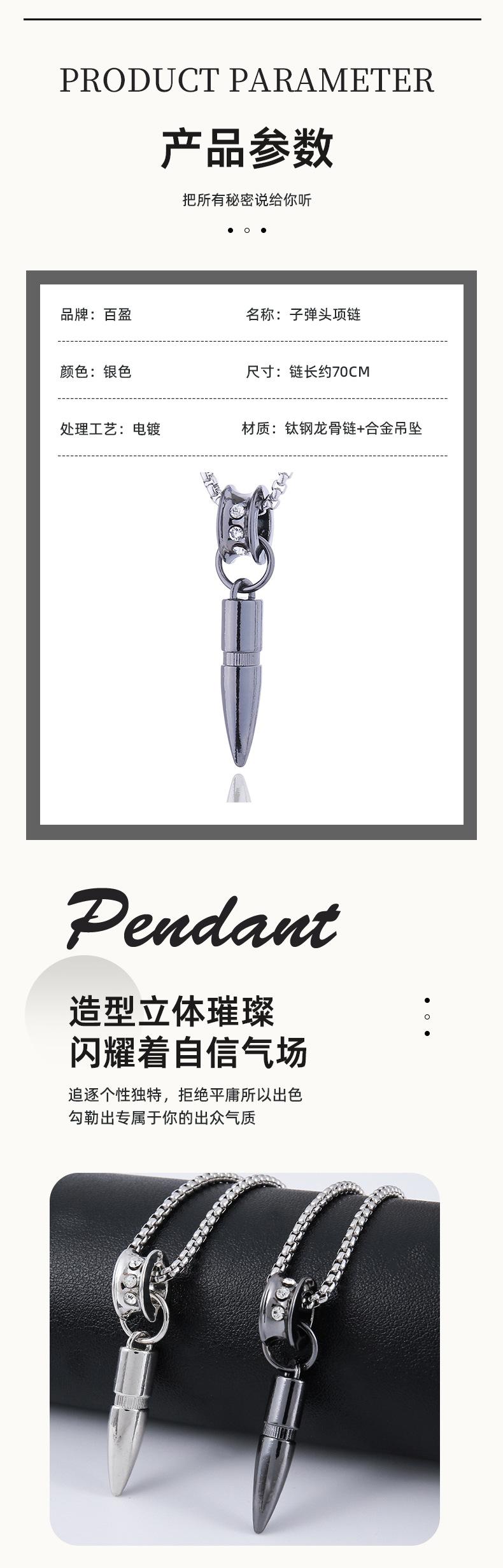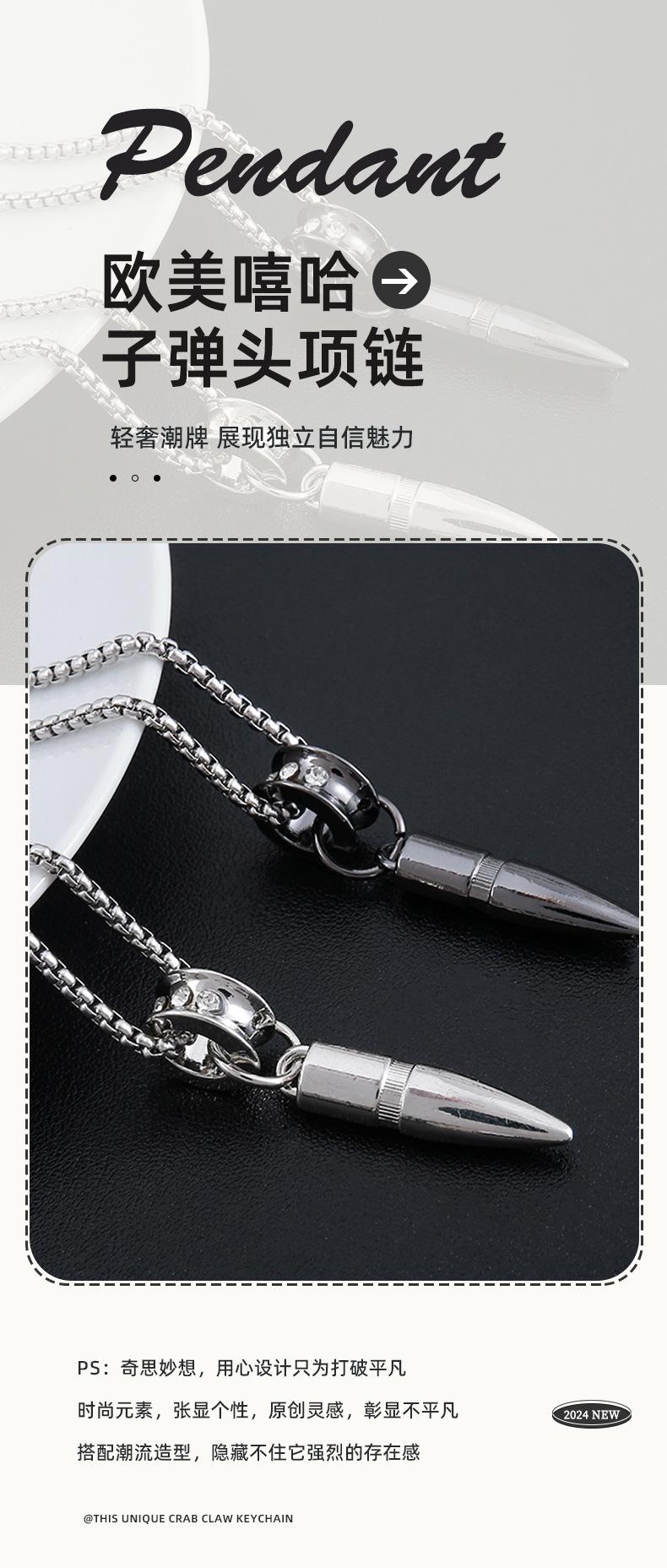 Collar de bala larga de estilo hip-hop europeo y americano con punta dominante y simulacro de anillo, cadena colgante de concha.