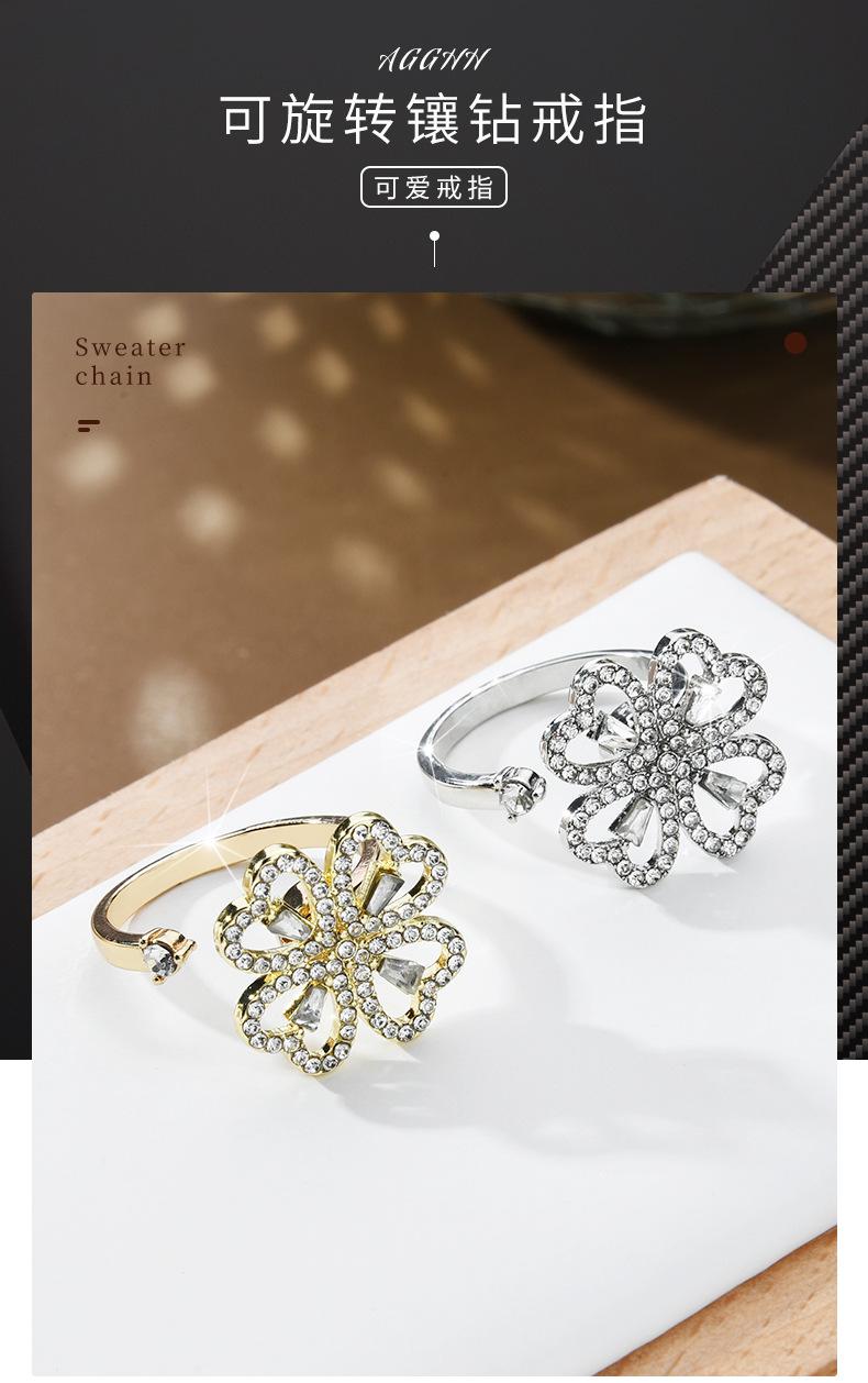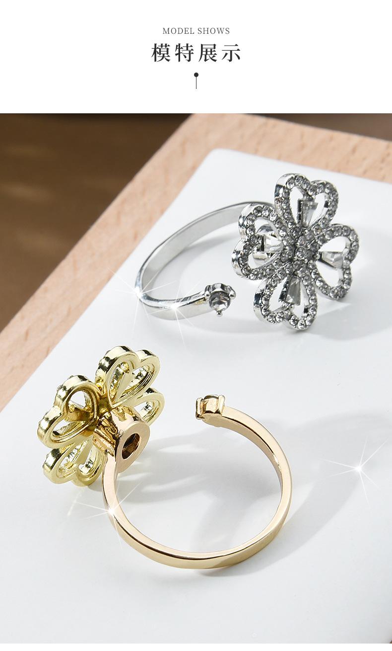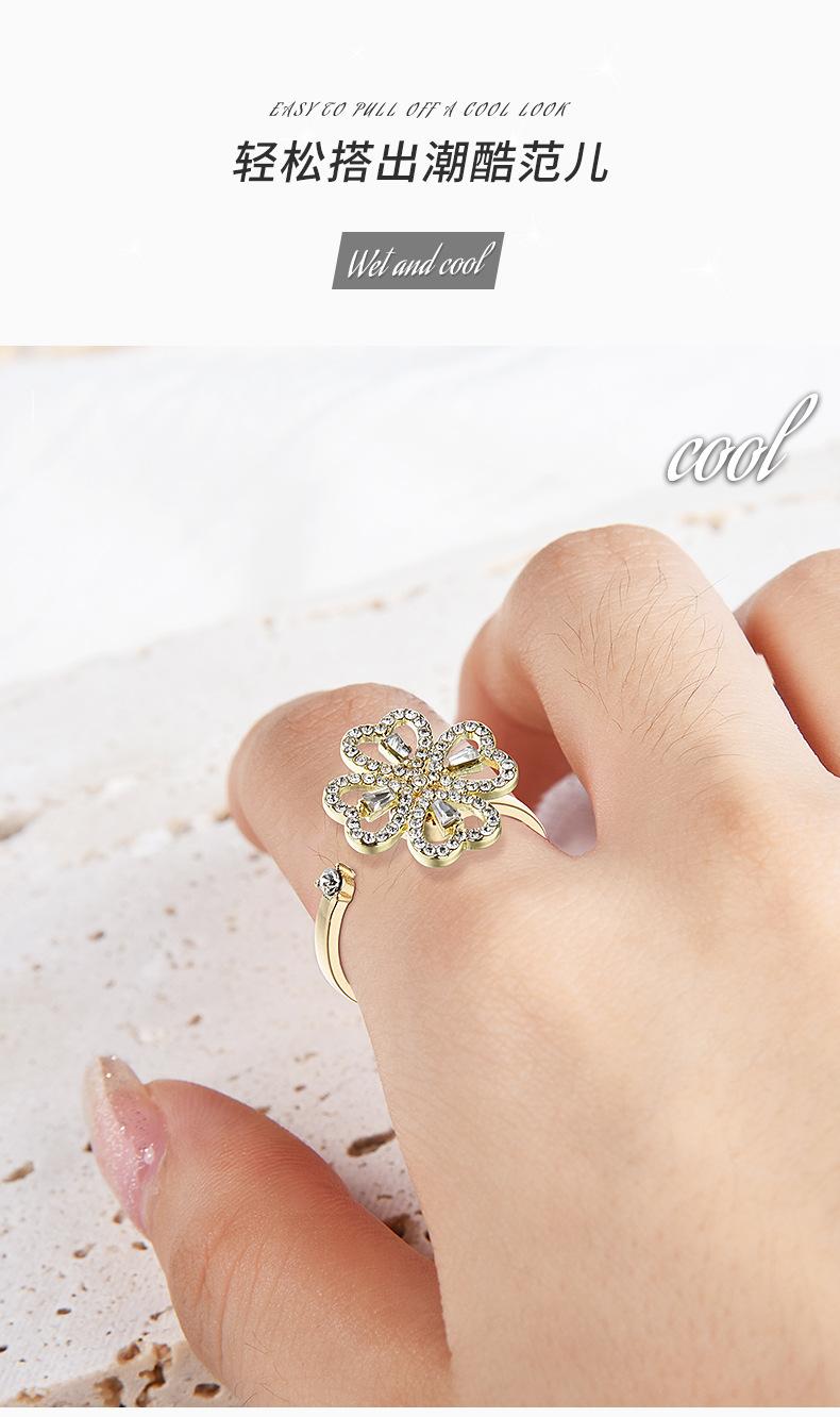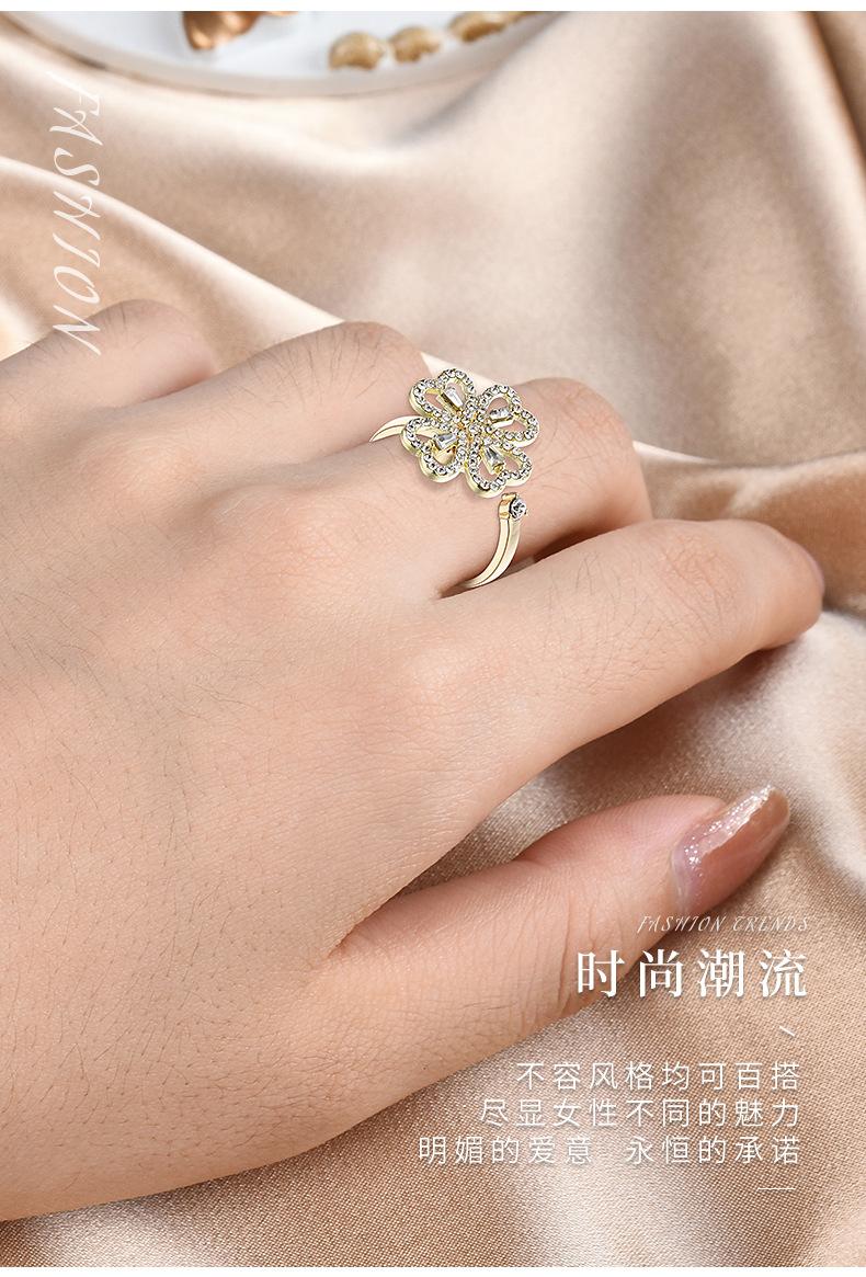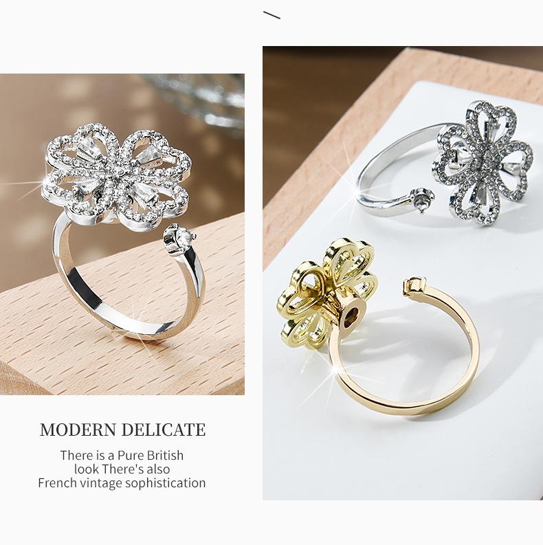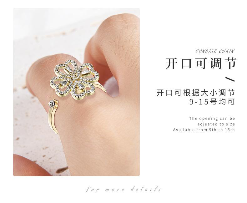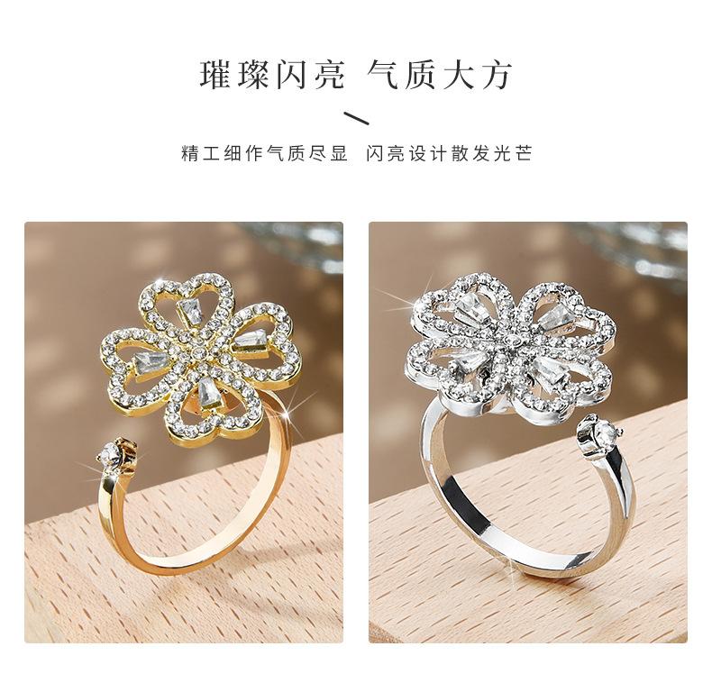 Anillo de trébol de cuatro hojas giratorio de diamante hueco nuevo 2022 Diseño abierto de moda para hombres y mujeres, misma joyería al por mayor