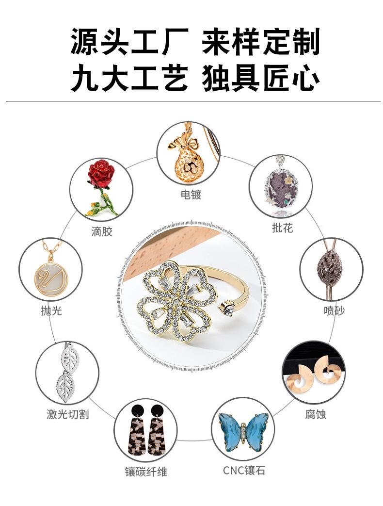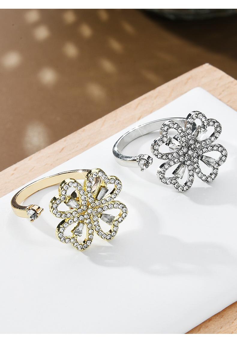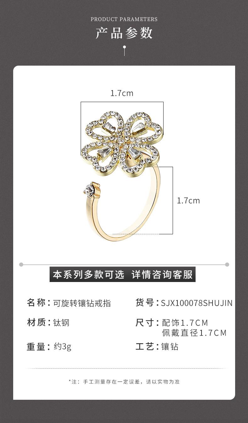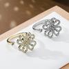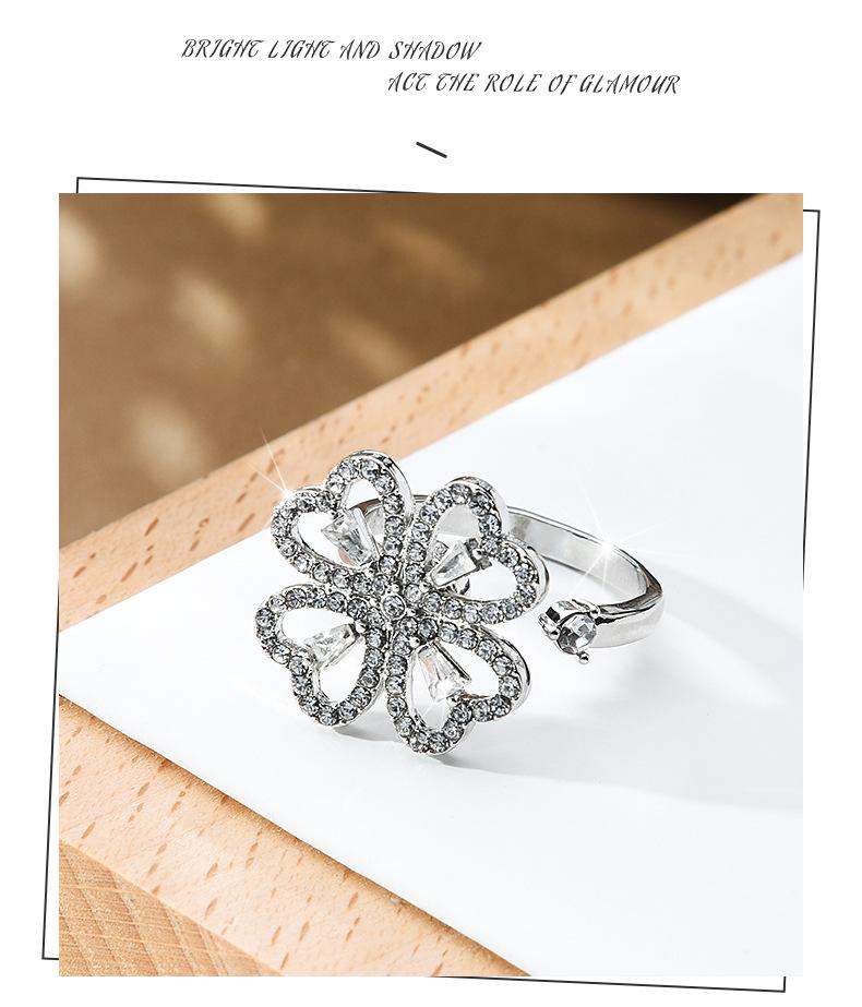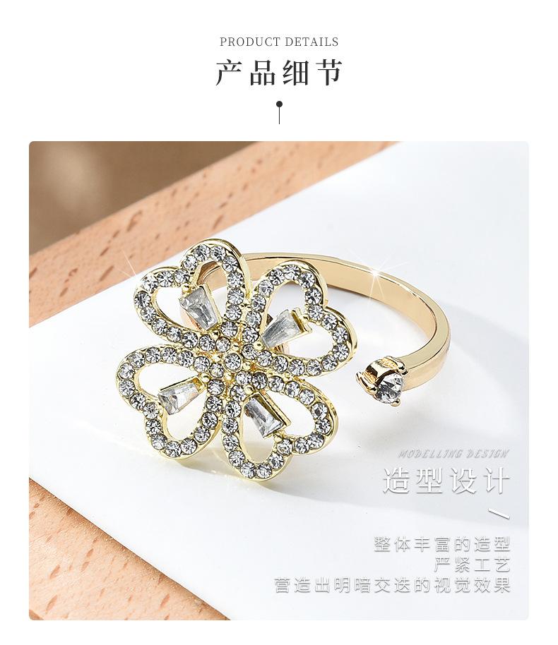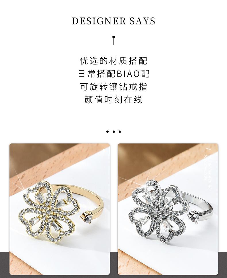 Anillo de trébol de cuatro hojas giratorio de diamante hueco nuevo 2022 Diseño abierto de moda para hombres y mujeres, misma joyería al por mayor