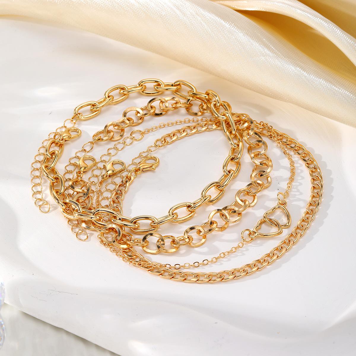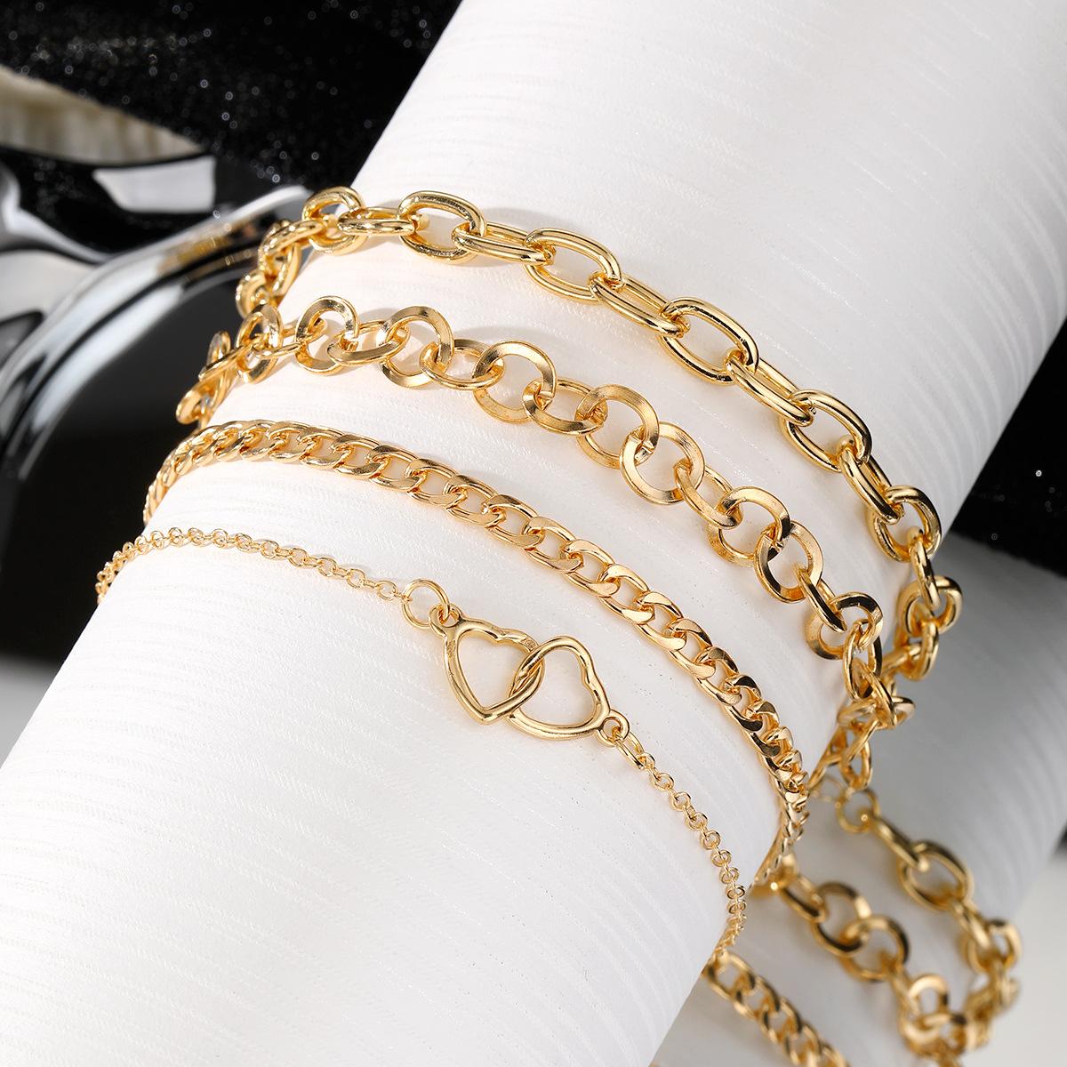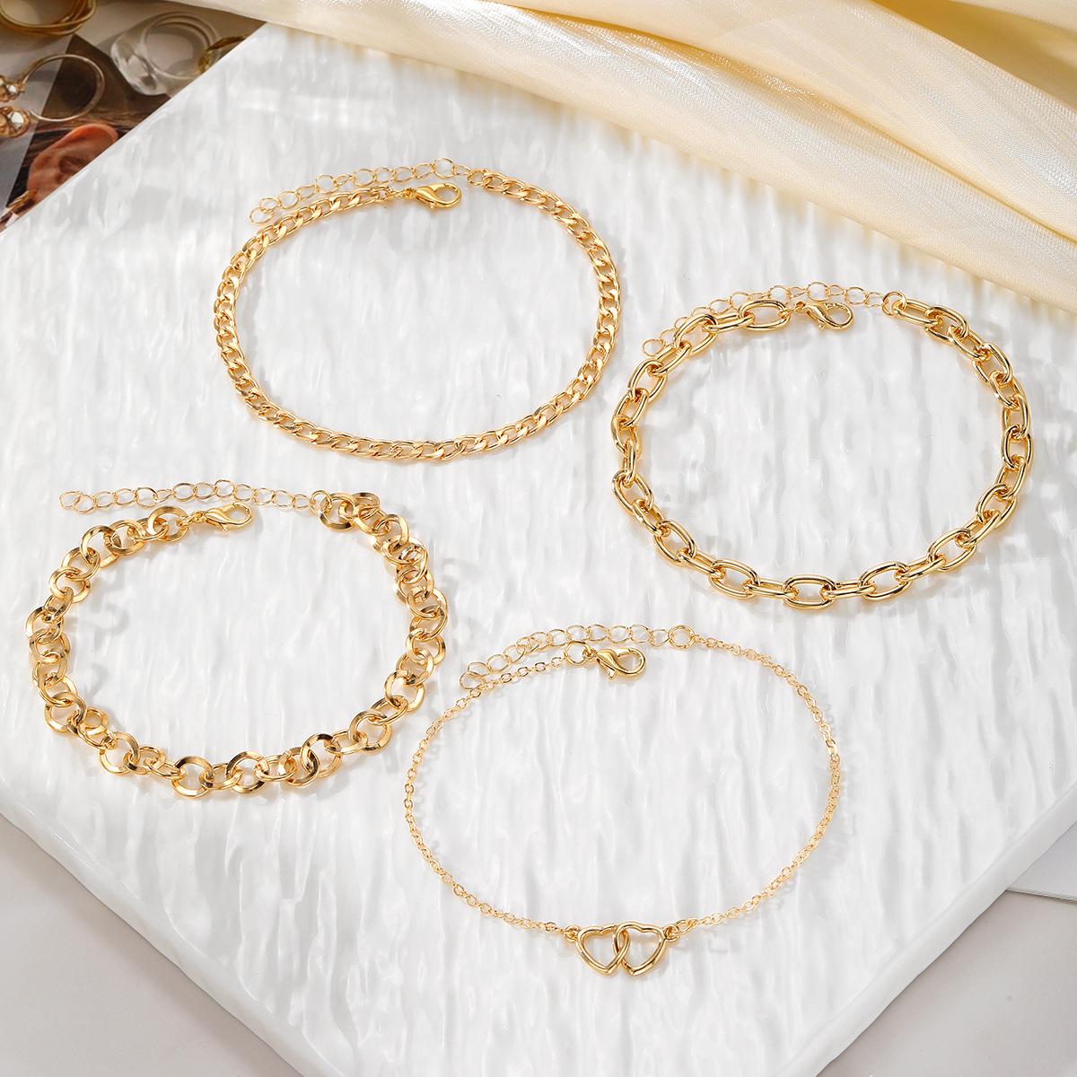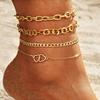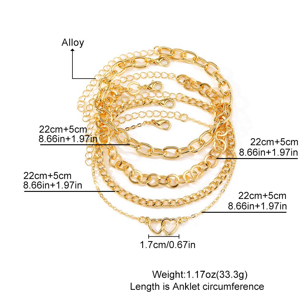 Tobillera de cadena doble de amor de metal de alta gama con temperamento de moda de calzado popular transfronterizo de Europa y los Estados Unidos, juego de 4 piezas para mujer al por mayor