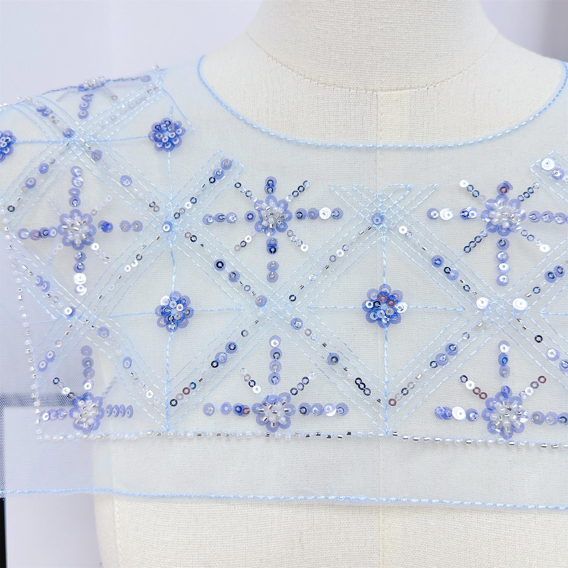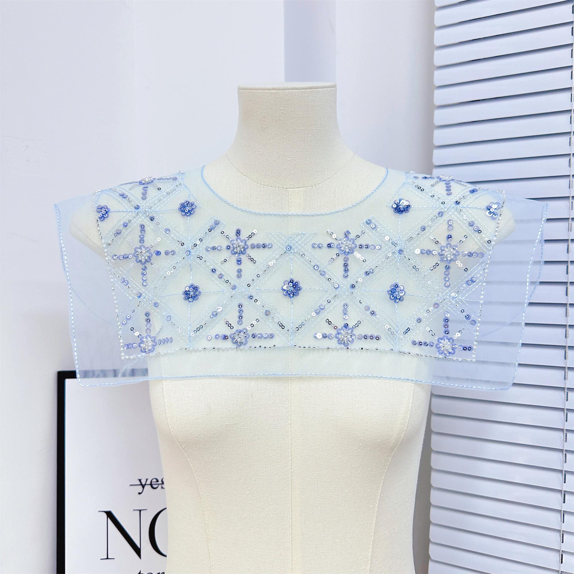 Cuello de lentejuelas con cuentas europeas y americanas, tapeta de flores, cuello delantero, vestido de novia, accesorios de decoración para vestido de novia, comercio electrónico transfronterizo exclusivo