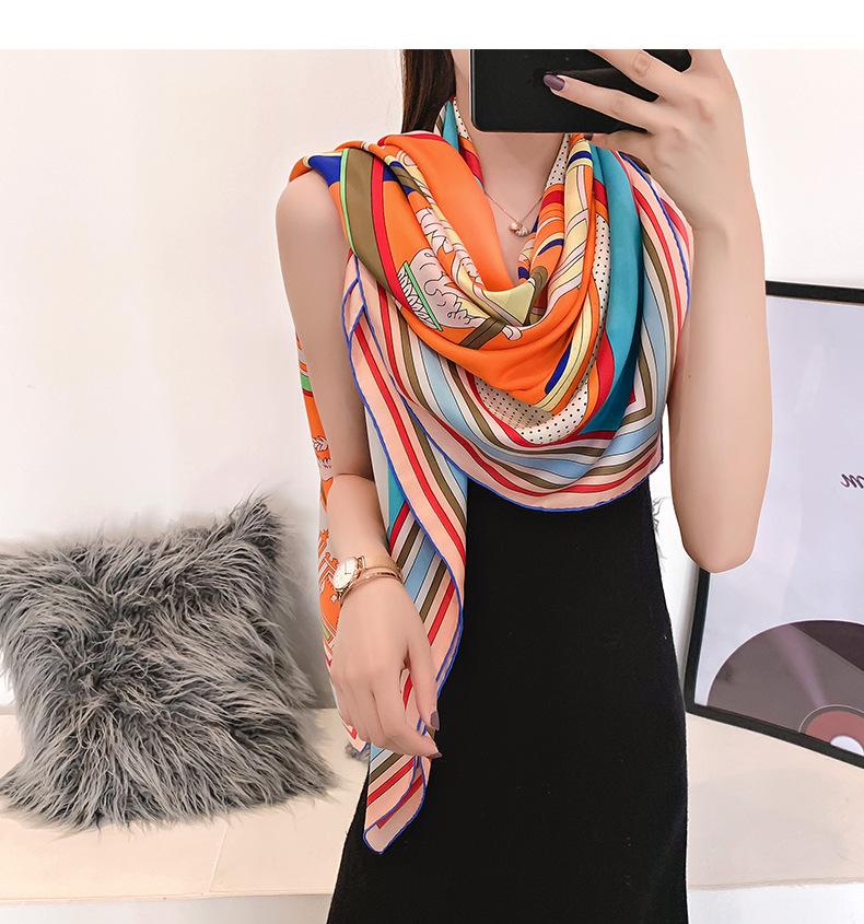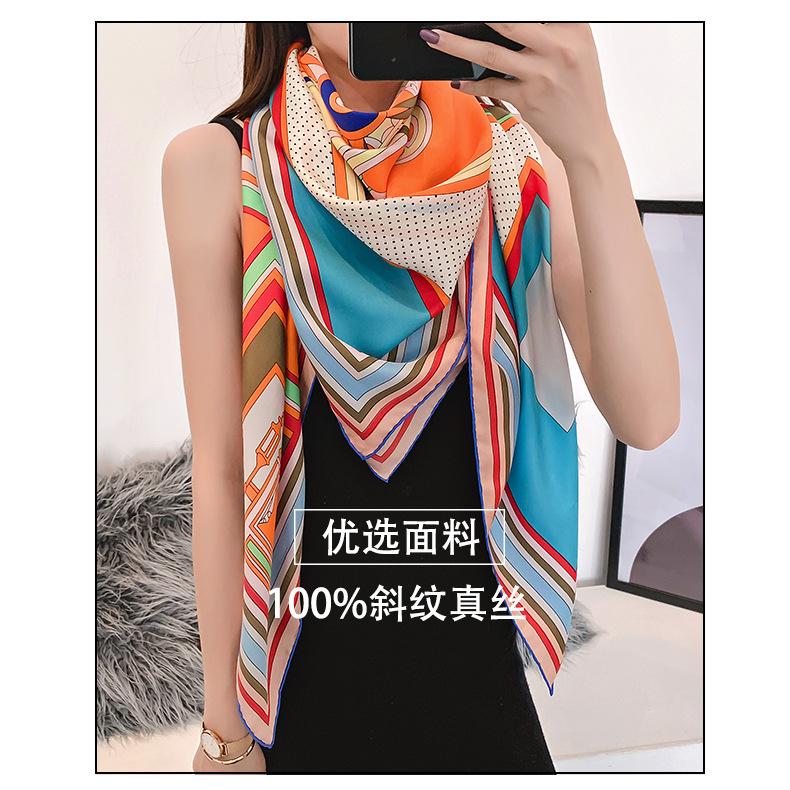 Bufanda Cuadrada de Seda Nueva de Primavera y Otoño Respetuosa con la Piel Bufanda Estampada Simple Creativa Personalizada Cómoda Suave Chal Parasol