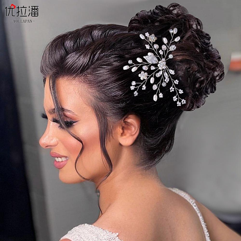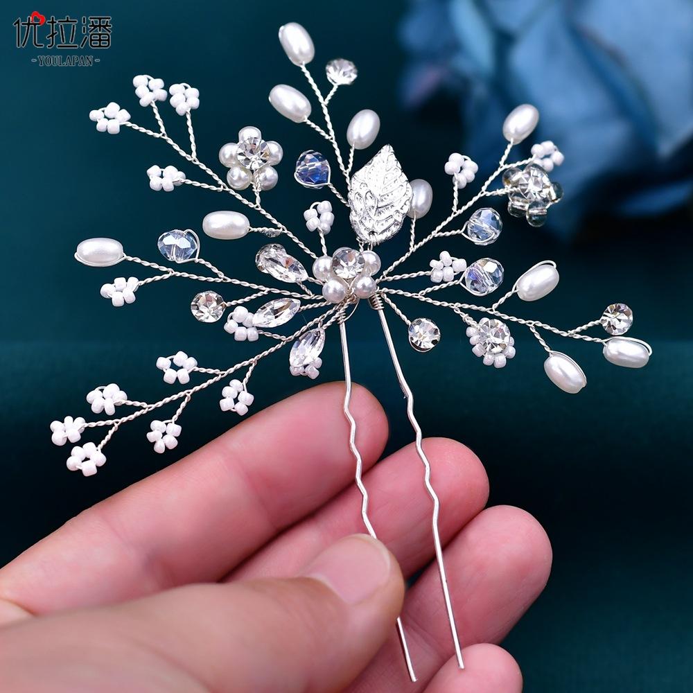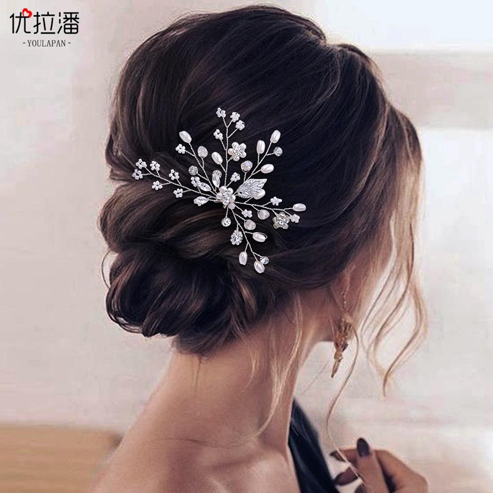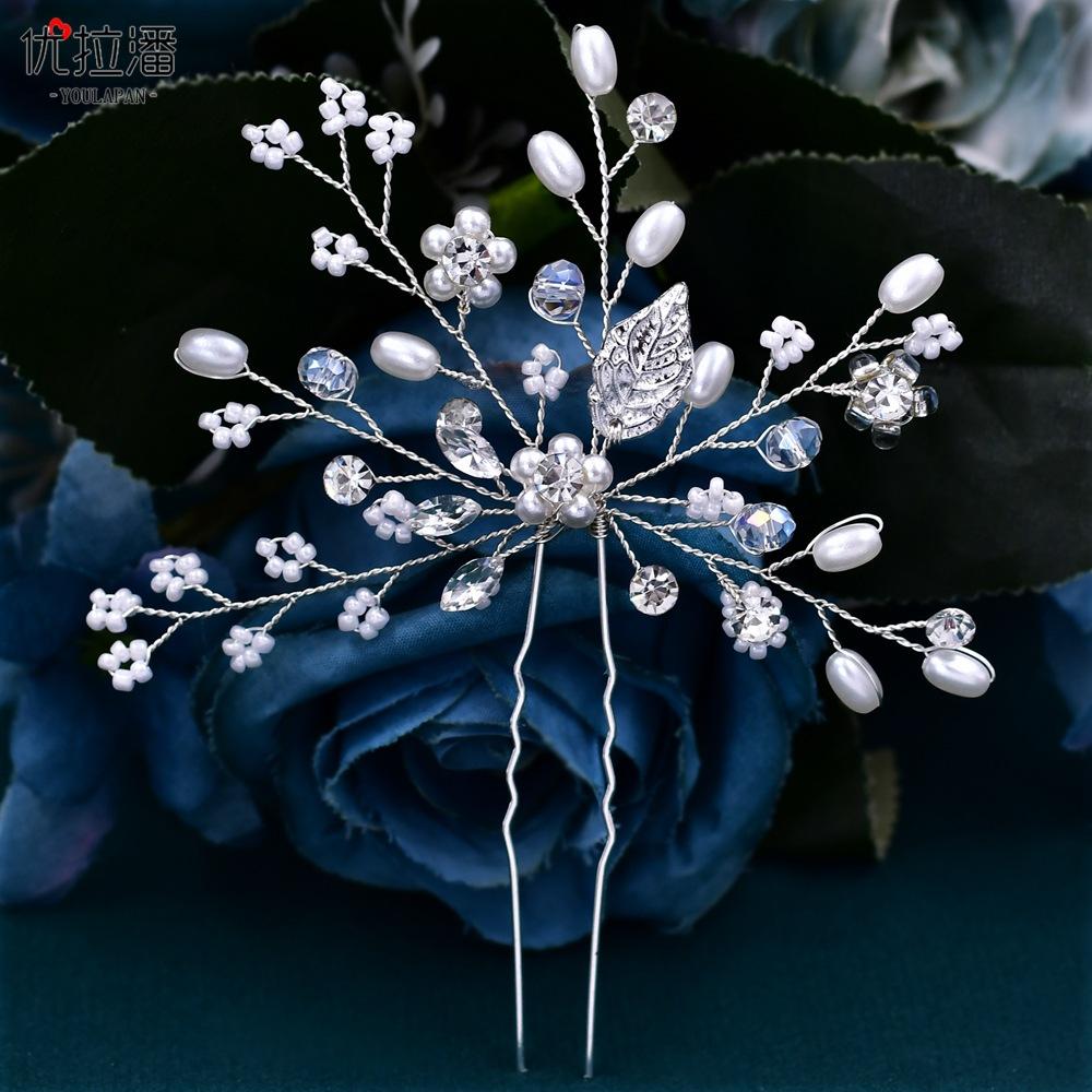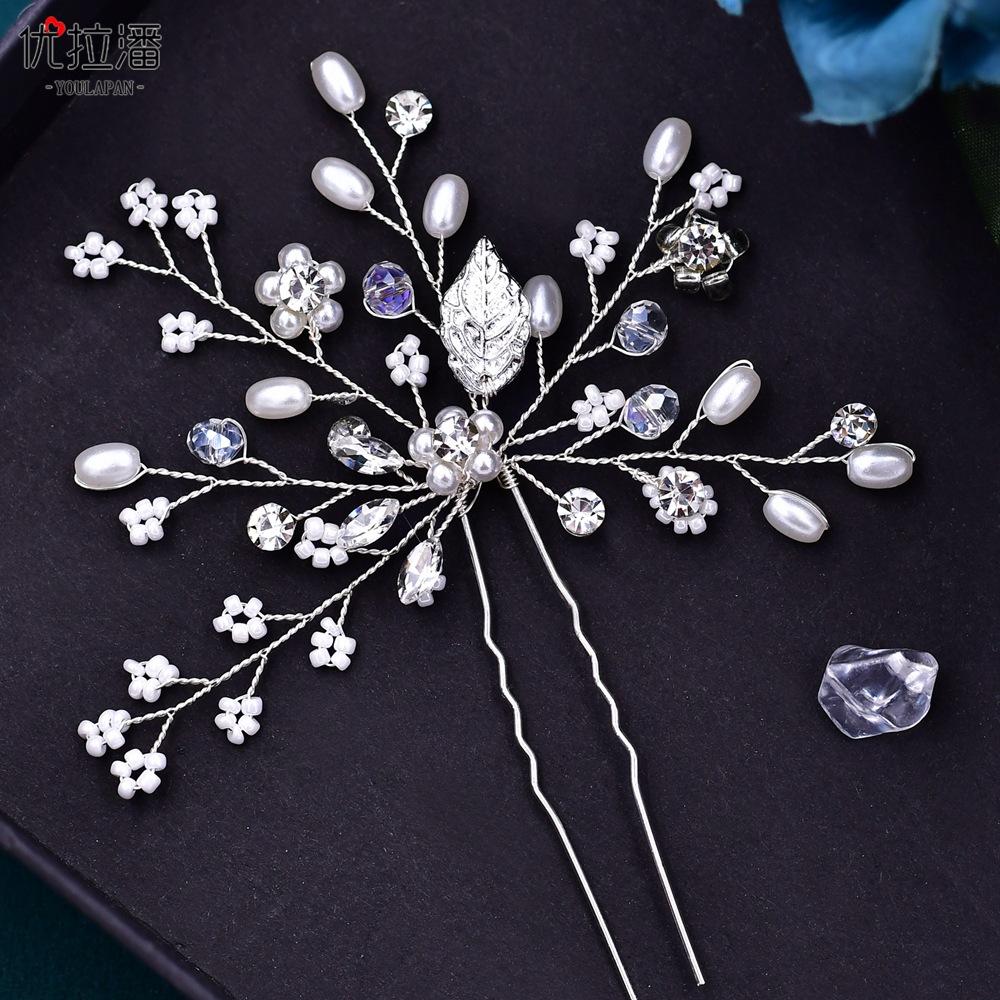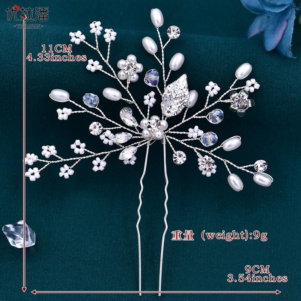 Youlapan Hp103 Europeo y Americano Nupcial Hecho a Mano con Cuentas Pedrería Accesorios para el Cabello Aleación Hoja Horquilla para el Cabello en Forma de U Pasador