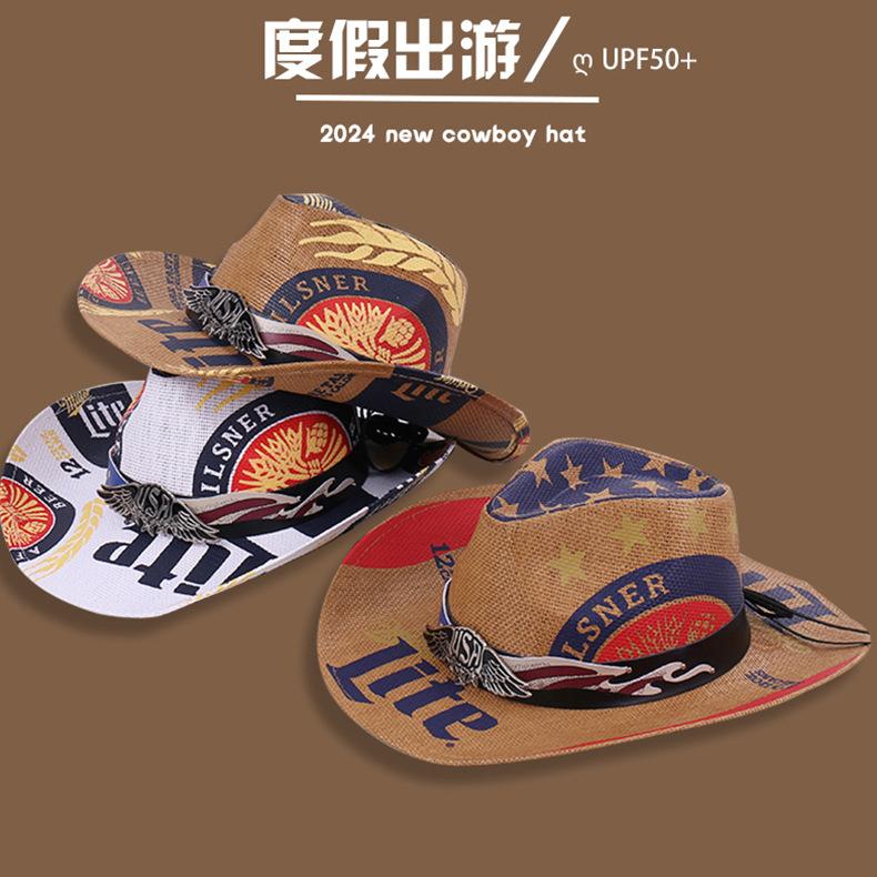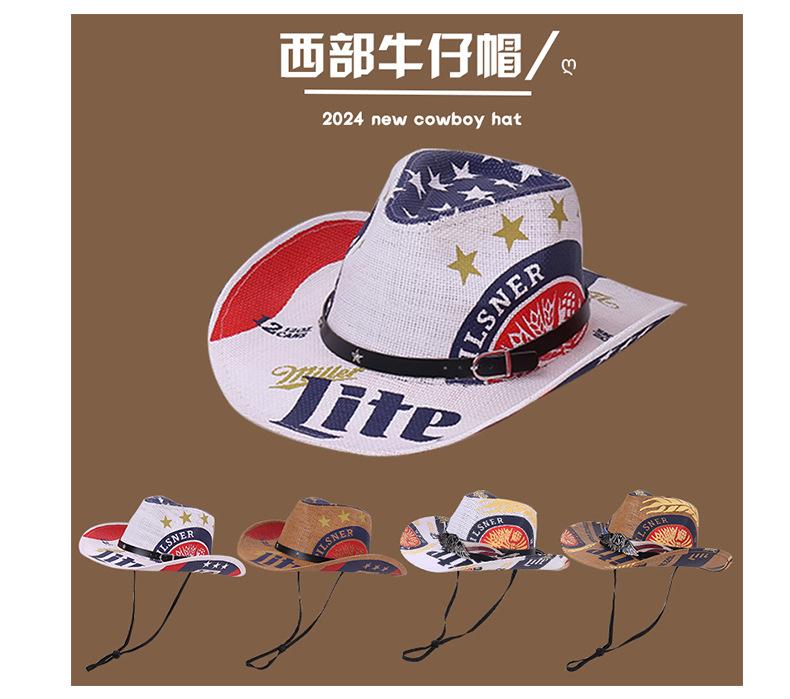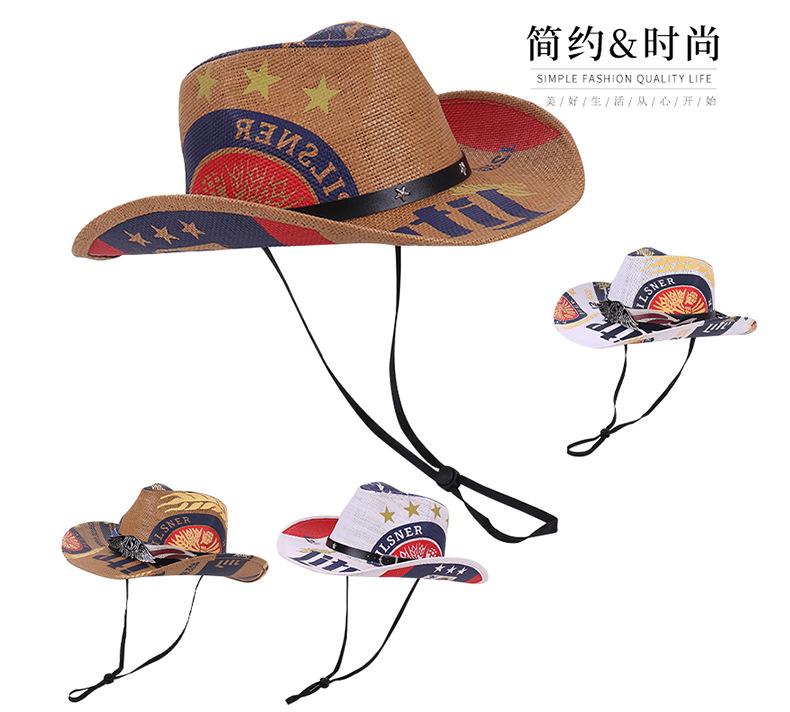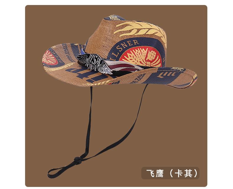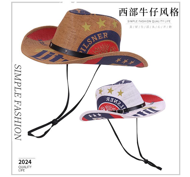 Sombrero de vaquero occidental de comercio exterior para hombres y mujeres, accesorio de escenario, sombrero de sol para actuaciones, sombrero de paja con grafiti, sombrero de jazz de caballero retro
