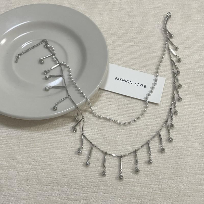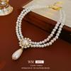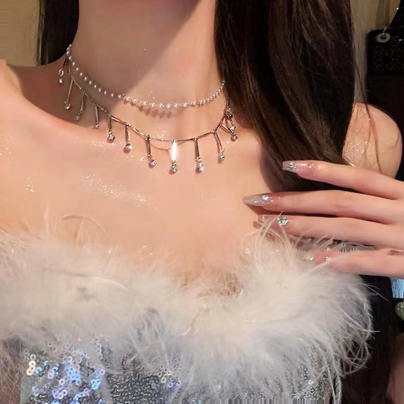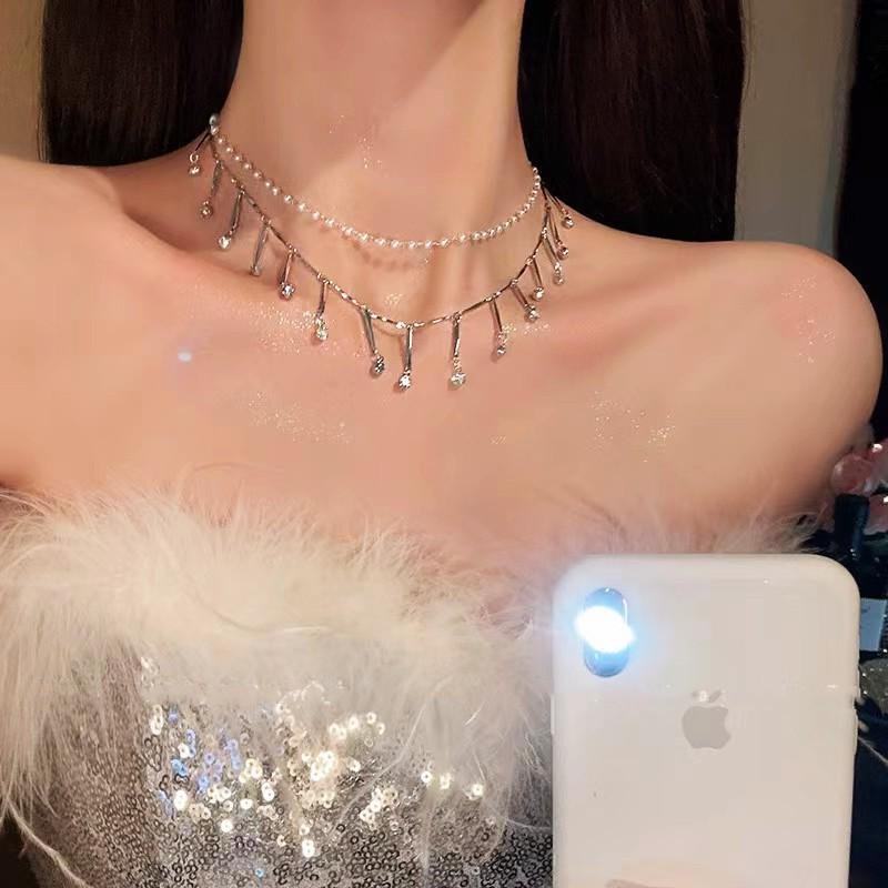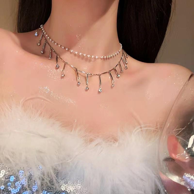 Nuevo collar de borla de diamantes de imitación de gota de agua de moda Perla de doble capa para mujer Cadena de clavícula elegante de alta gama de lujo ligero