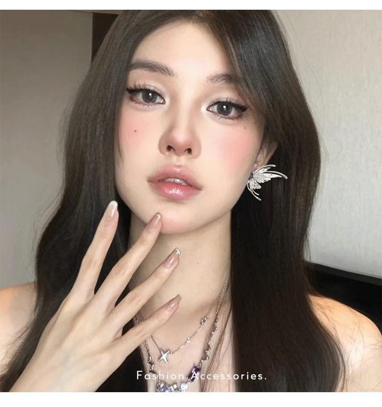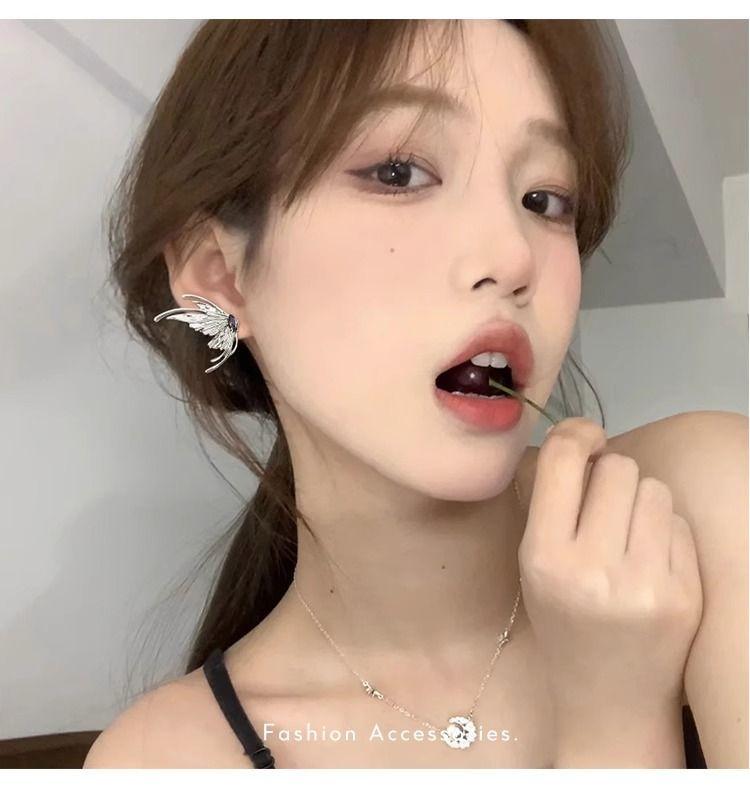 Pendientes de mariposa de plata con diseño de nicho, pendientes de temperamento, estilo frío, dulce, fresco, sexy, para chica, ligeros, de lujo, con clip para la oreja