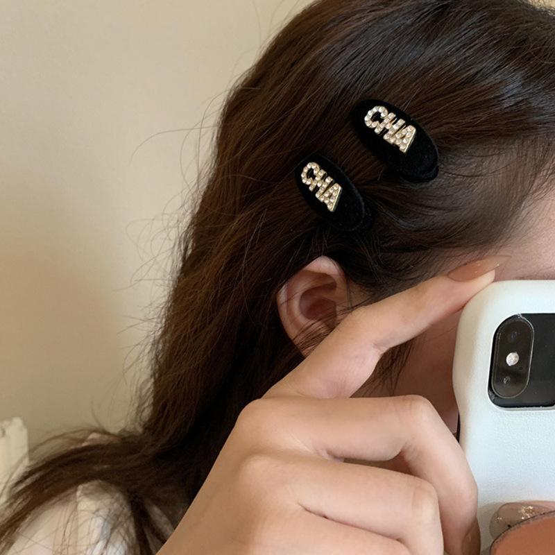 Horquilla de metal con letras de estilo coreano, pinza lateral para flequillo, accesorios para el cabello, horquilla con pinza de pico de pato, para mujer, otoño e invierno, terciopelo
