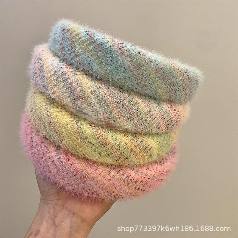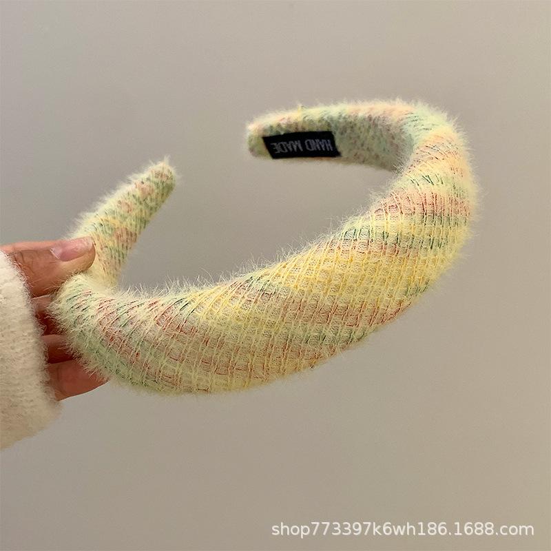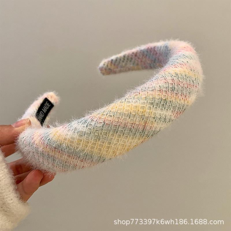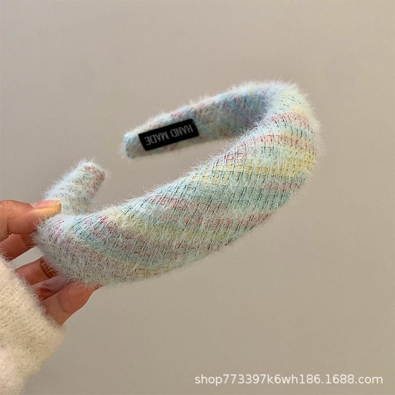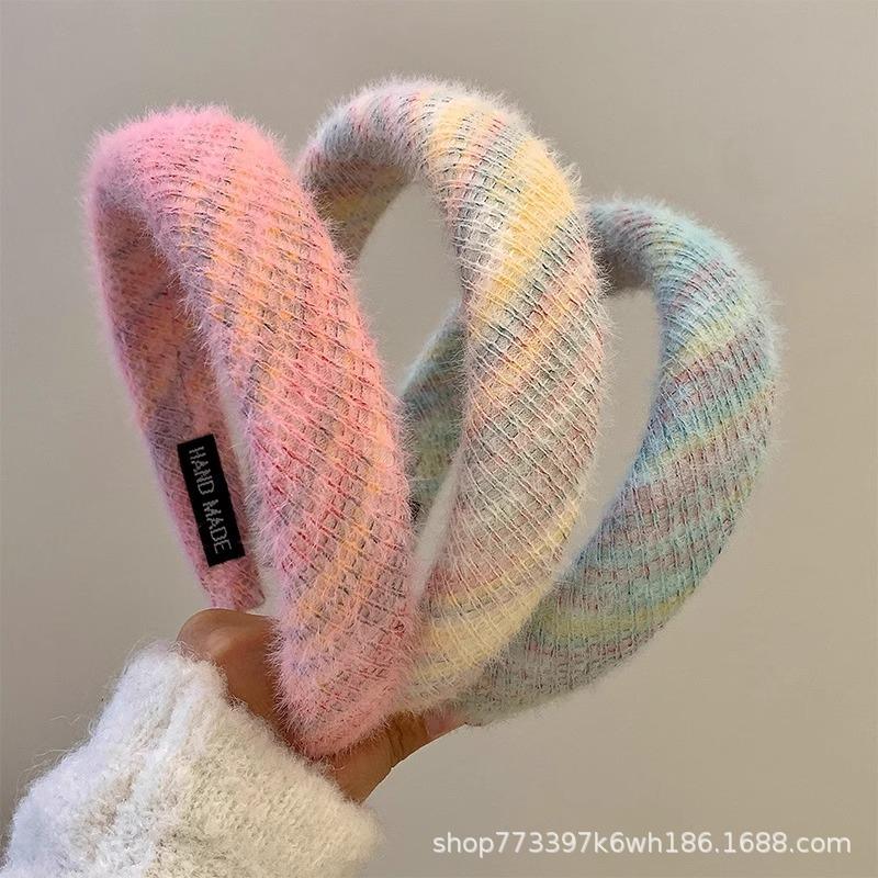 Diadema de felpa colorida para mujer 2023, nueva y dulce diadema de borde ancho con calavera alta, accesorios para el cabello, maquillaje para lavado de cara, tocado antideslizante
