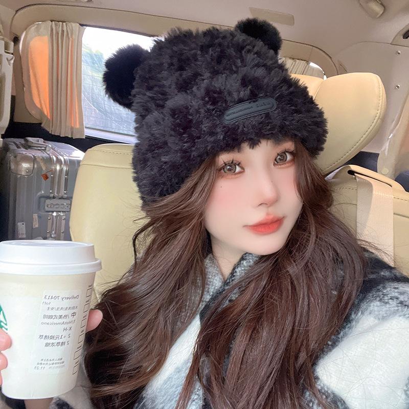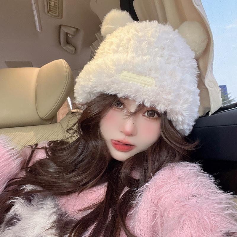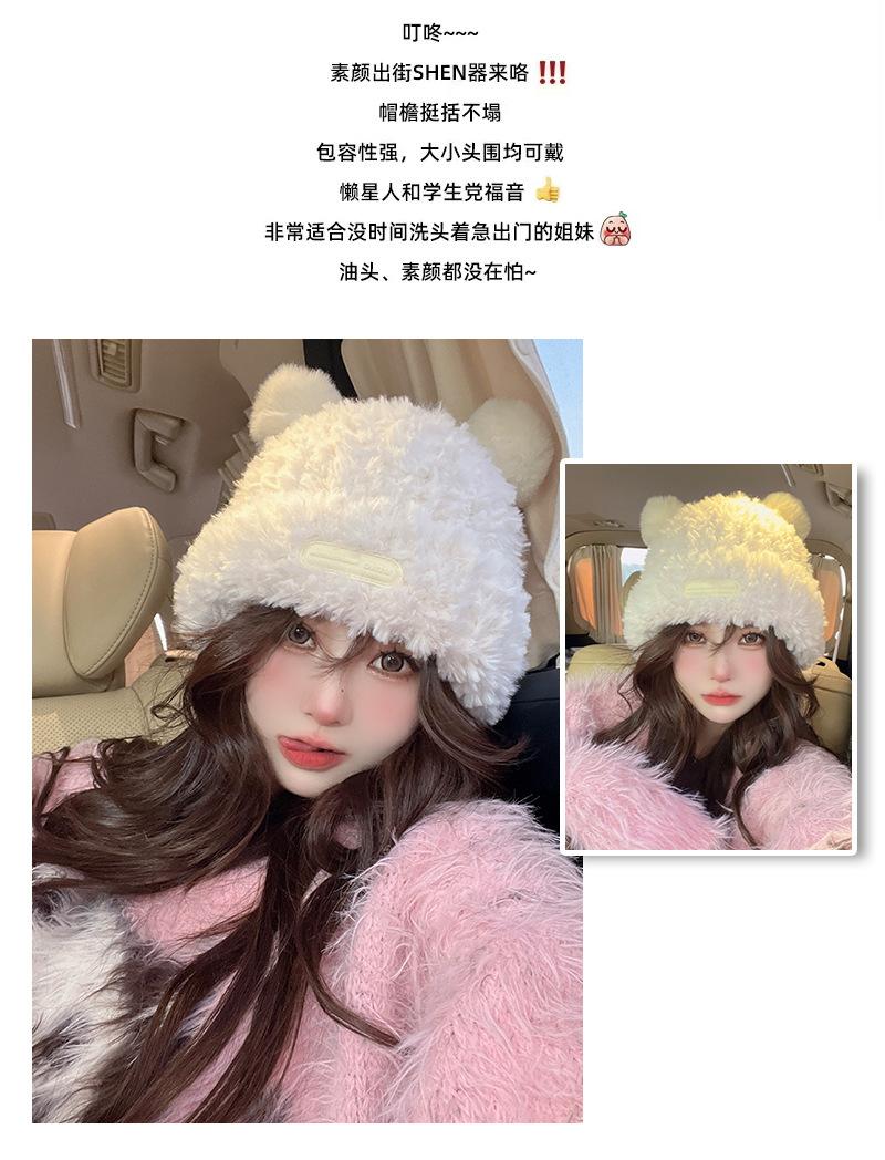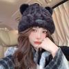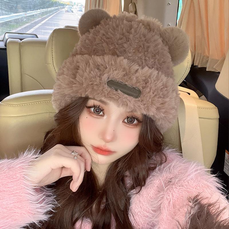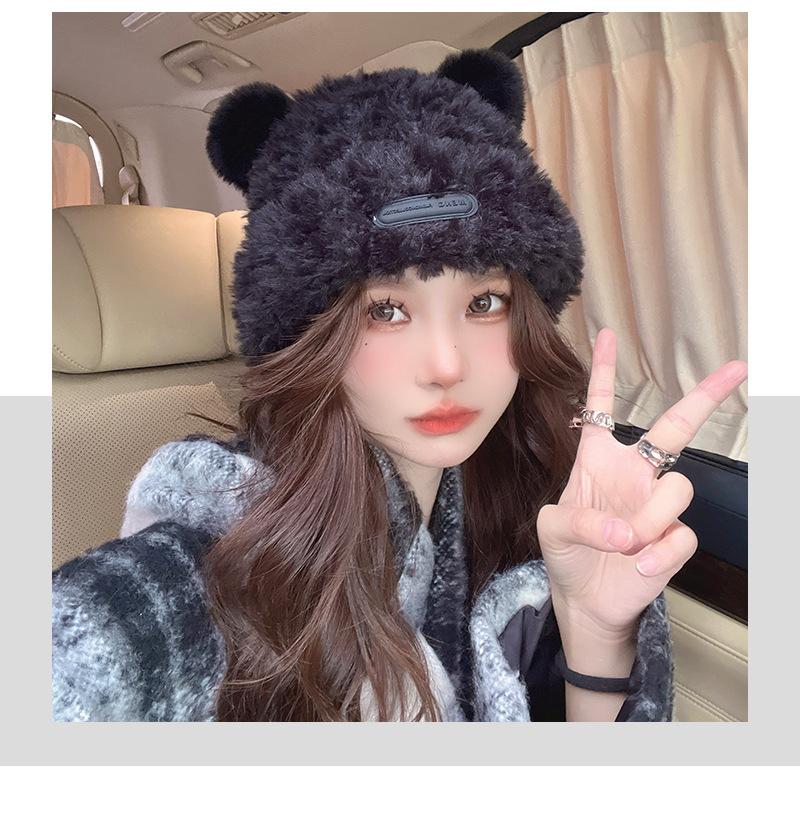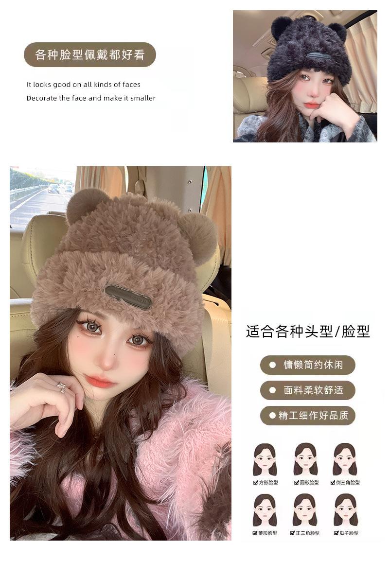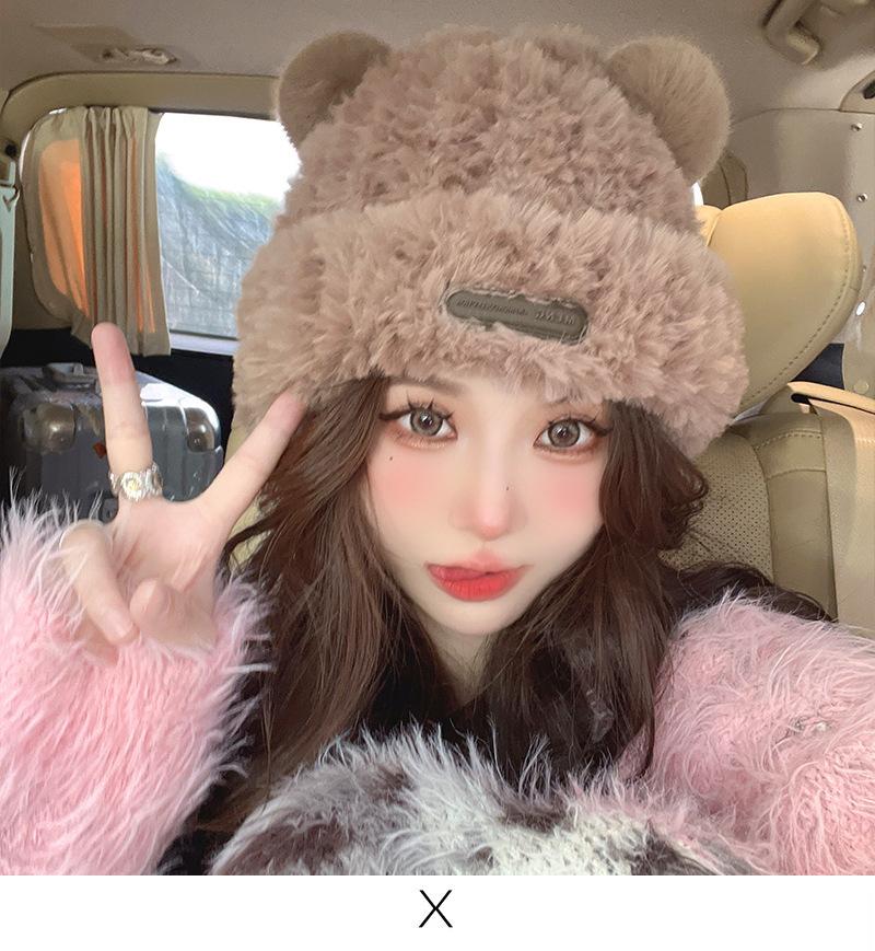 Gorro de oso para mujer invierno etiquetado lindo con cara peluda que hace ver pequeña cálido gorro de felpa lana jersey gorro con protección para las orejas marea