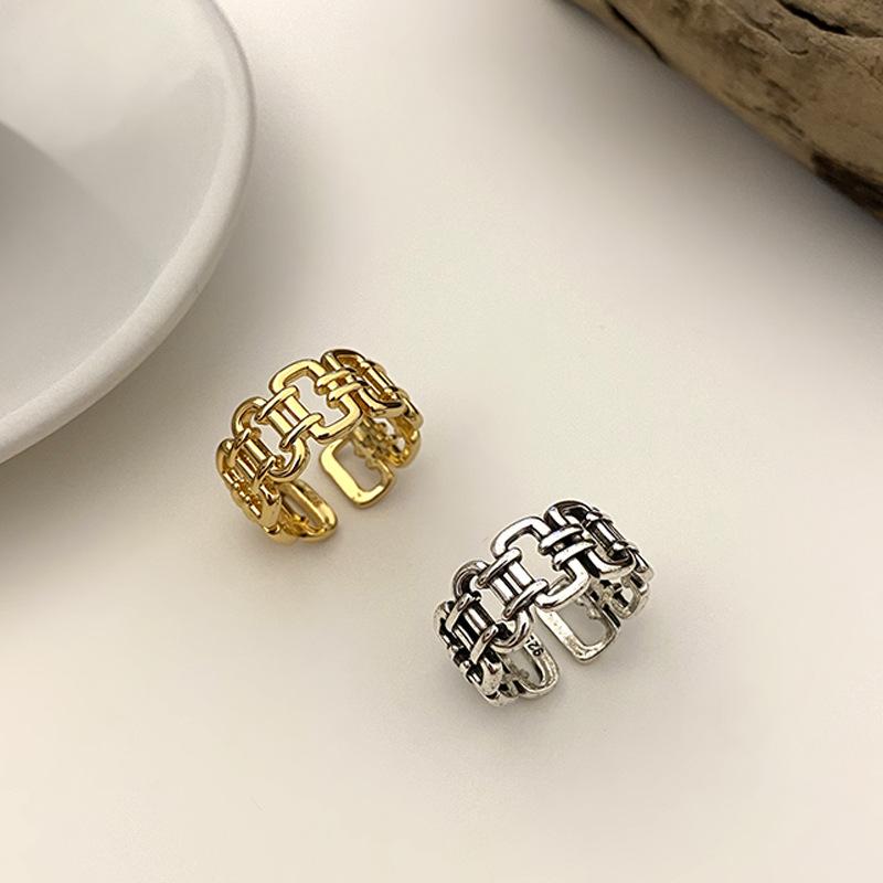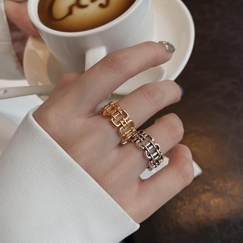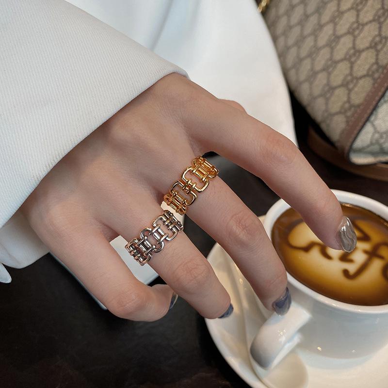 Nuevo anillo de cadena hueca creativo elegante simple anillo de dedo índice para niña joyería de diseño nicho de lujo ligero
