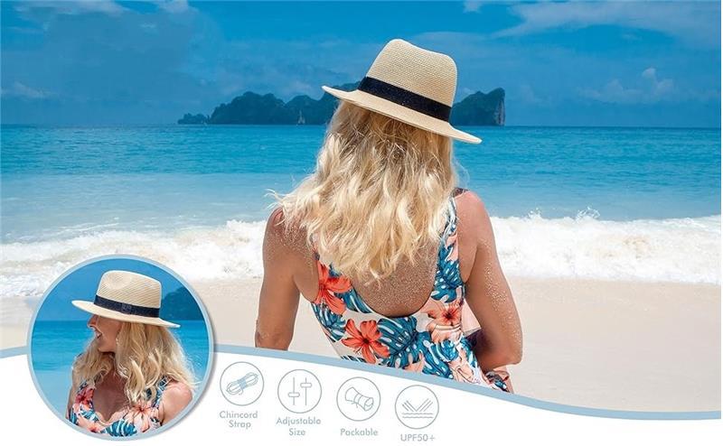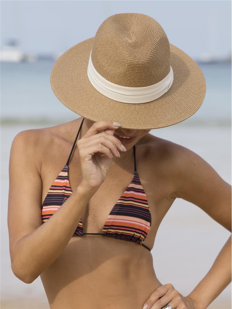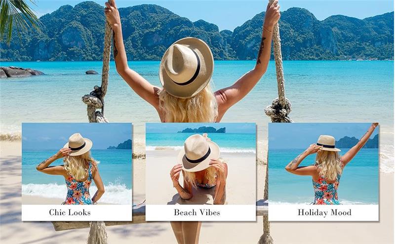 Sombrero de Paja de Alta Densidad Sombrero de Paja Panamá para Mujer Verano Ala Ancha Sombrero para el Sol Playa Mar Protección Solar Sombrero para el Sol