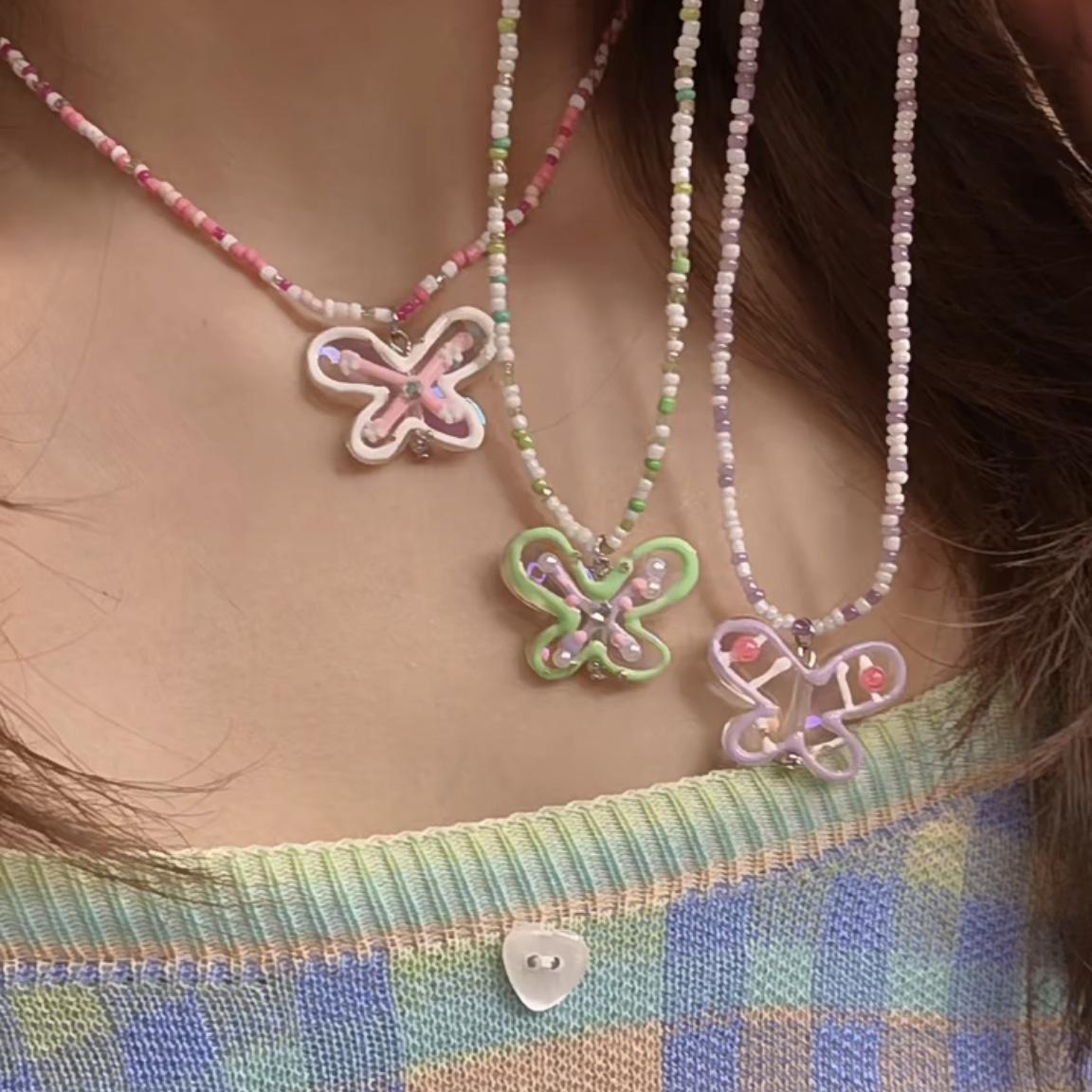 Purple Butterfly necklace, Pink butterfly necklace, Green butterfly necklace