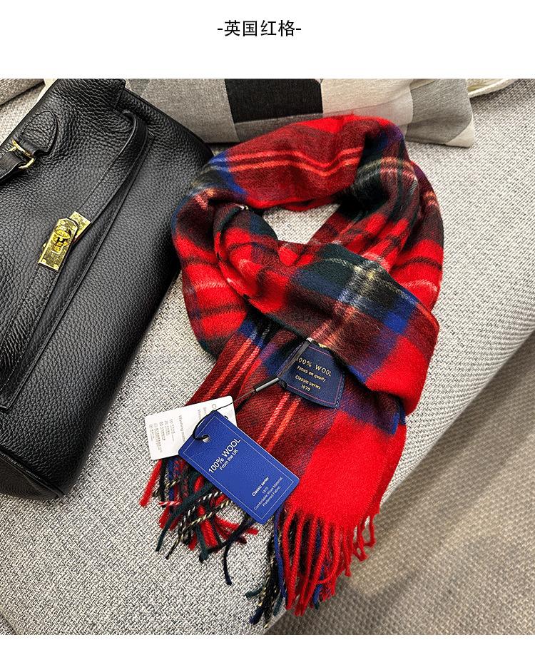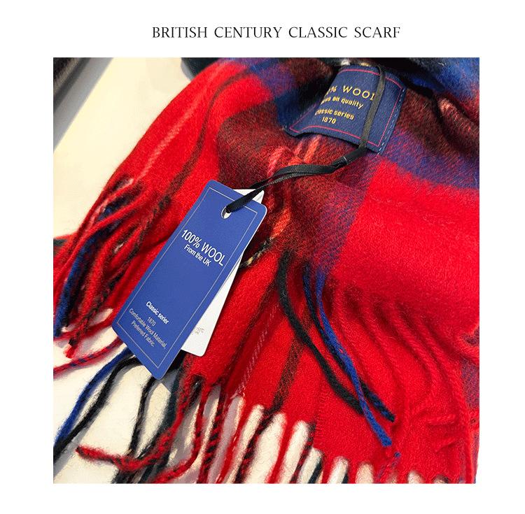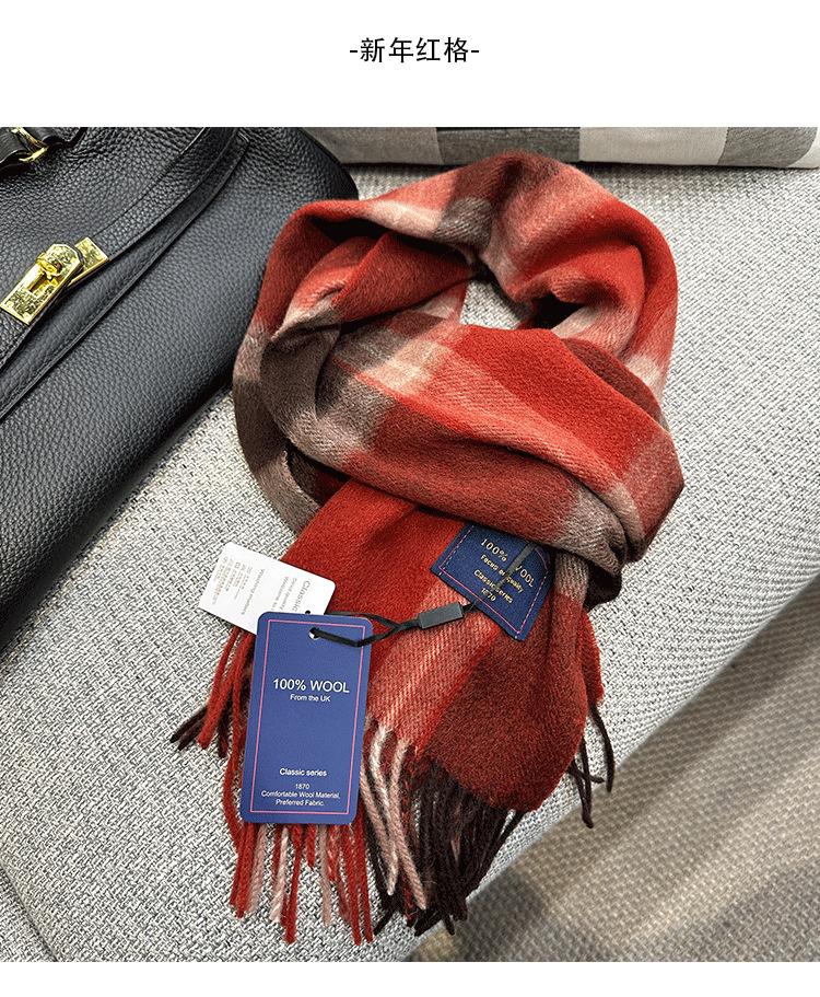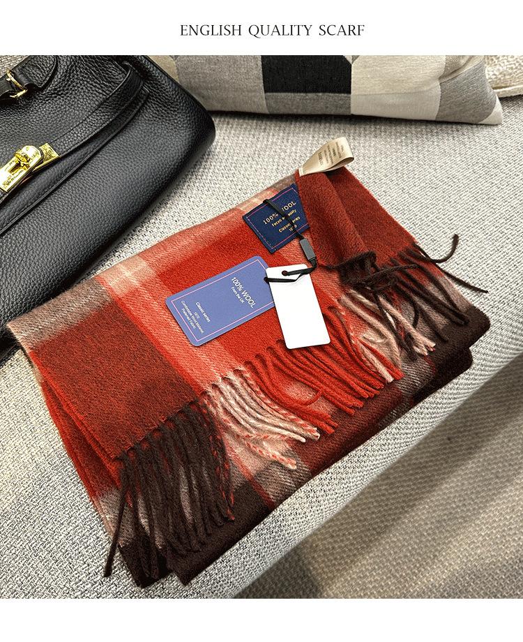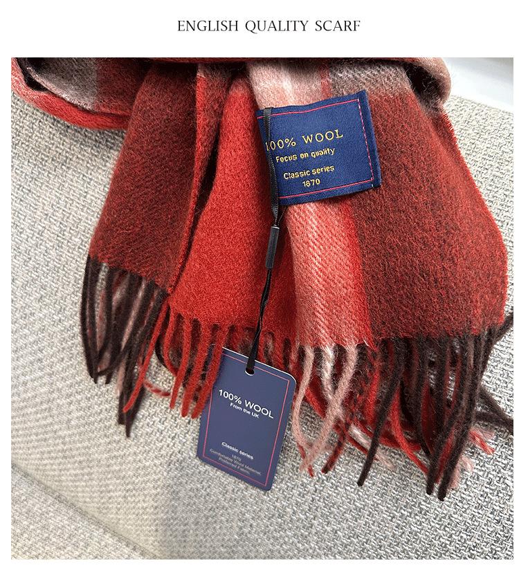 Bufanda Británica Clásica de Lana Merino 100% a Cuadros Roja Unisex Bufanda para Pareja Invierno Mujeres Cálida Hombres