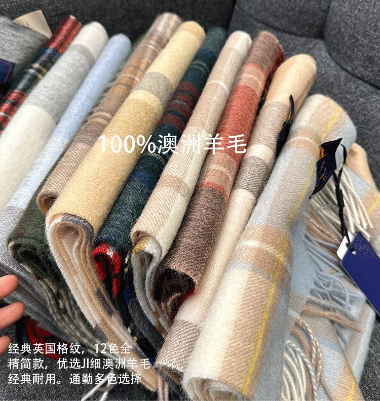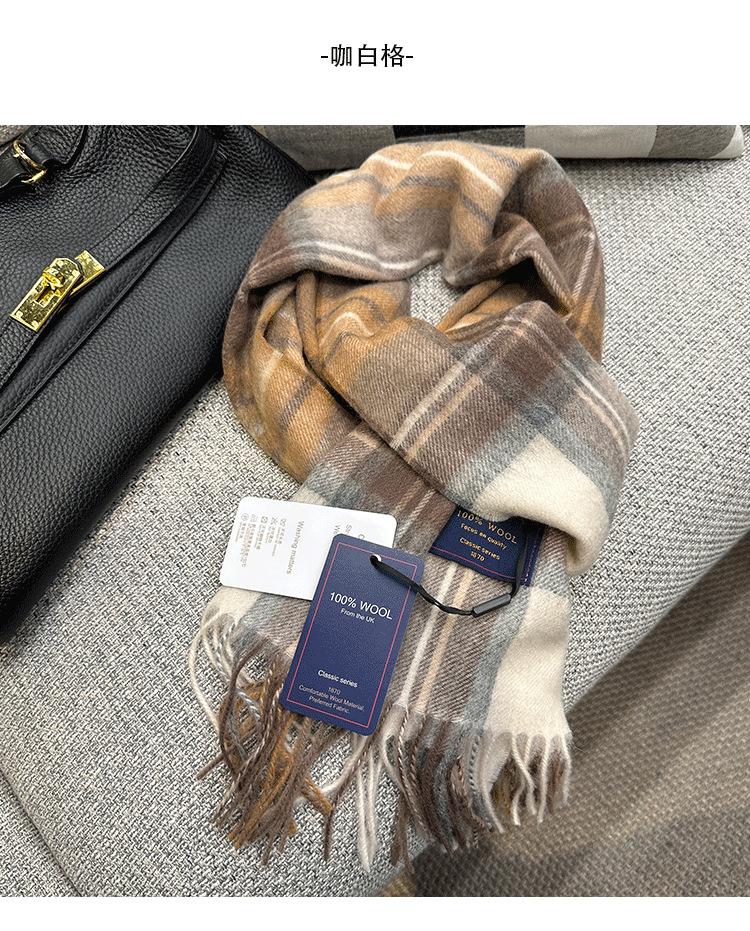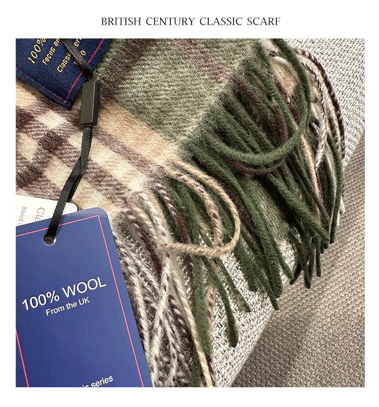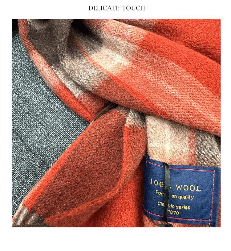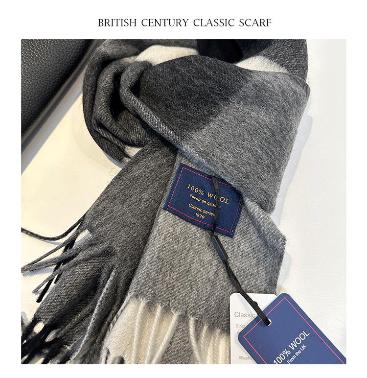 Bufanda Británica Clásica de Lana Merino 100% a Cuadros Roja Unisex Bufanda para Pareja Invierno Mujeres Cálida Hombres