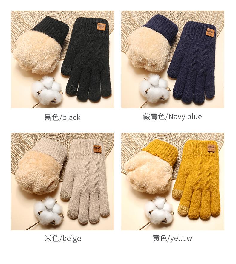 Guantes de punto de invierno para mujer, de doble capa, forrados con vellón, gruesos, resistentes al frío, cálidos, para ciclismo al aire libre, con pantalla táctil.