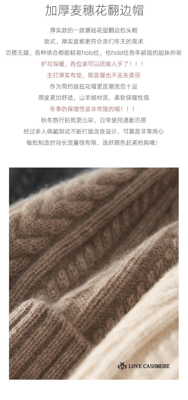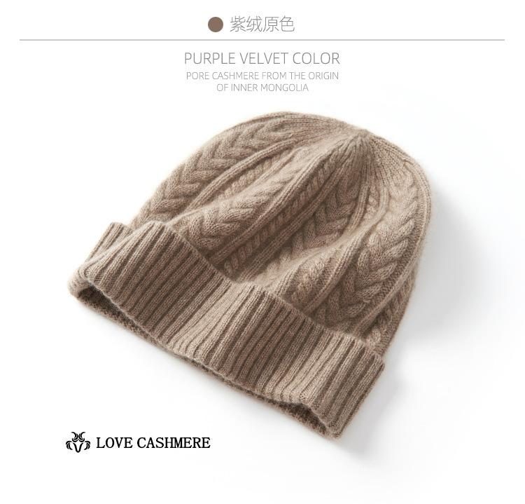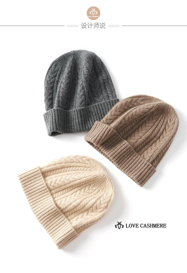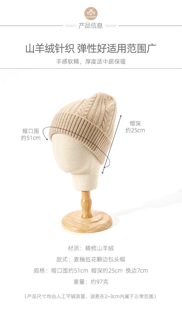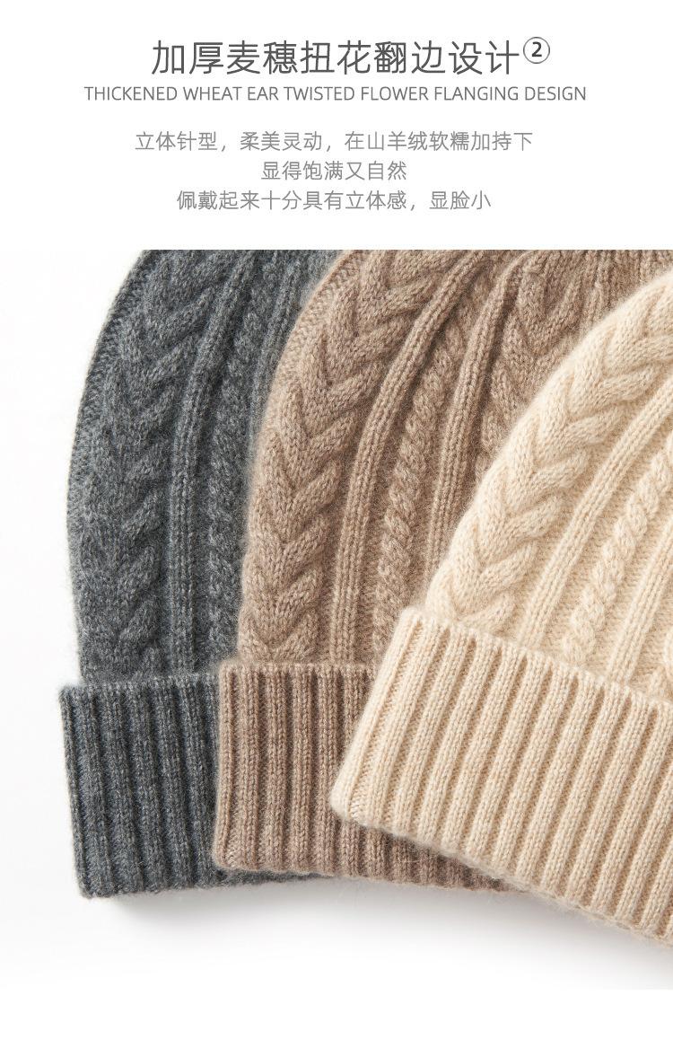 Cachemira 2025 Otoño e Invierno Nuevo Sombrero de Punto Casual con Puño, Elegante para Mujer, Color Puro, Cable de Espiga de Trigo, Moda Exterior