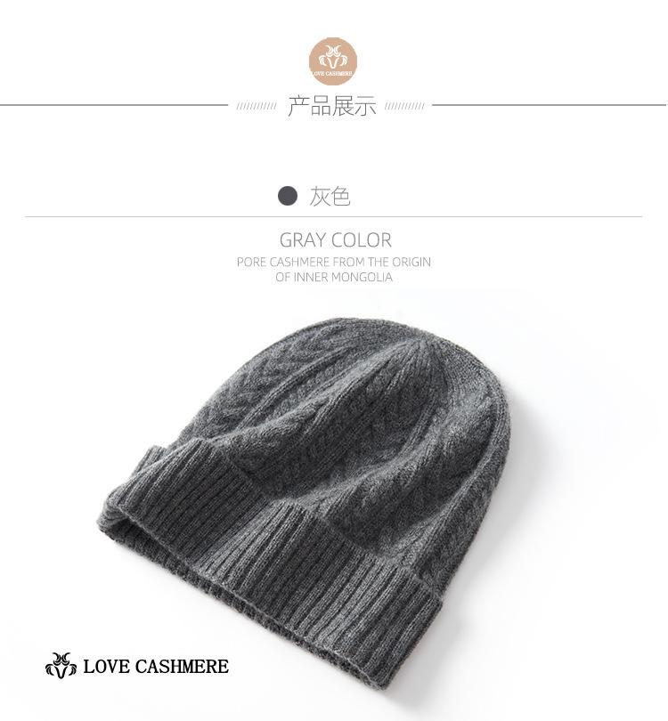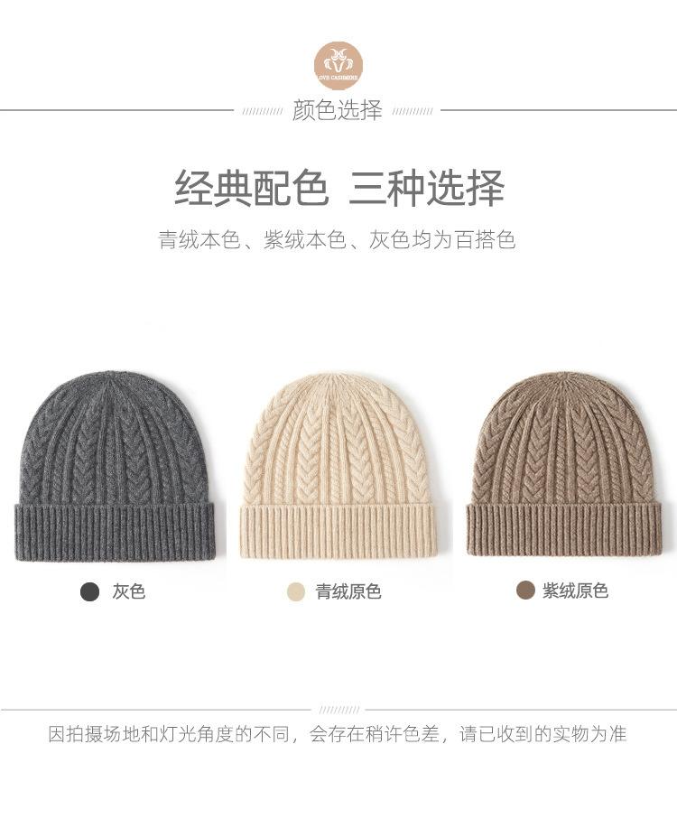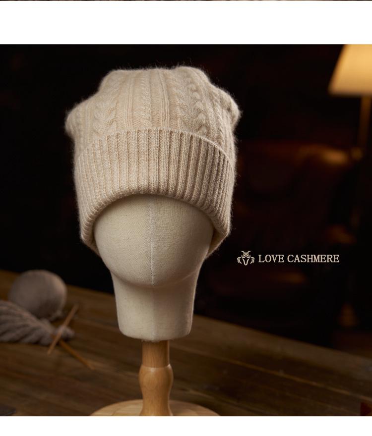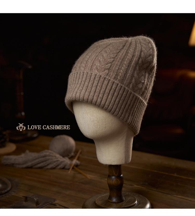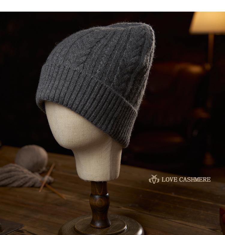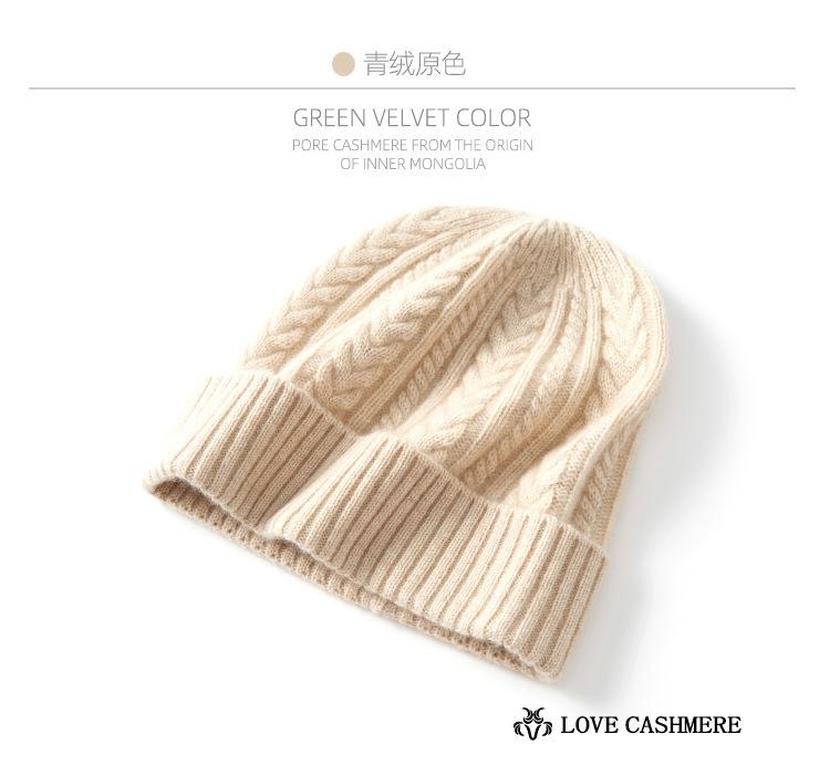 Cachemira 2025 Otoño e Invierno Nuevo Sombrero de Punto Casual con Puño, Elegante para Mujer, Color Puro, Cable de Espiga de Trigo, Moda Exterior