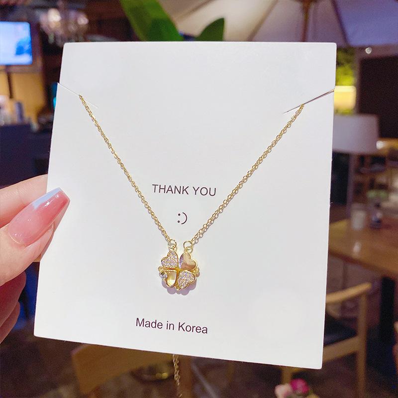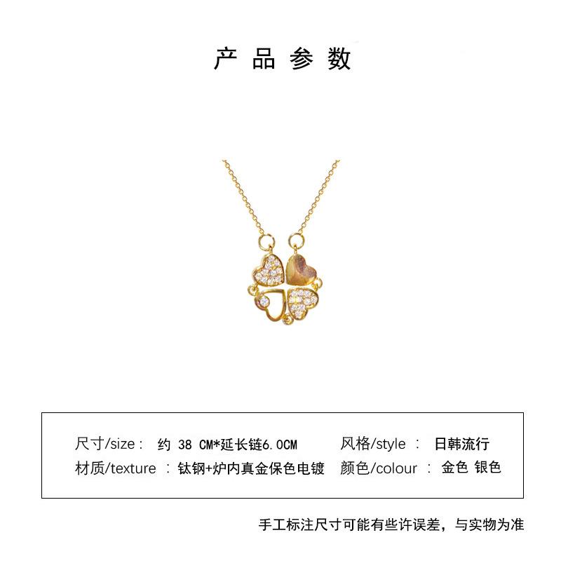 Collar de acero de titanio con colgante de cuatro hojas de amor de lujo y personalidad femenina, cadena de clavícula plegable con nicho de amor.