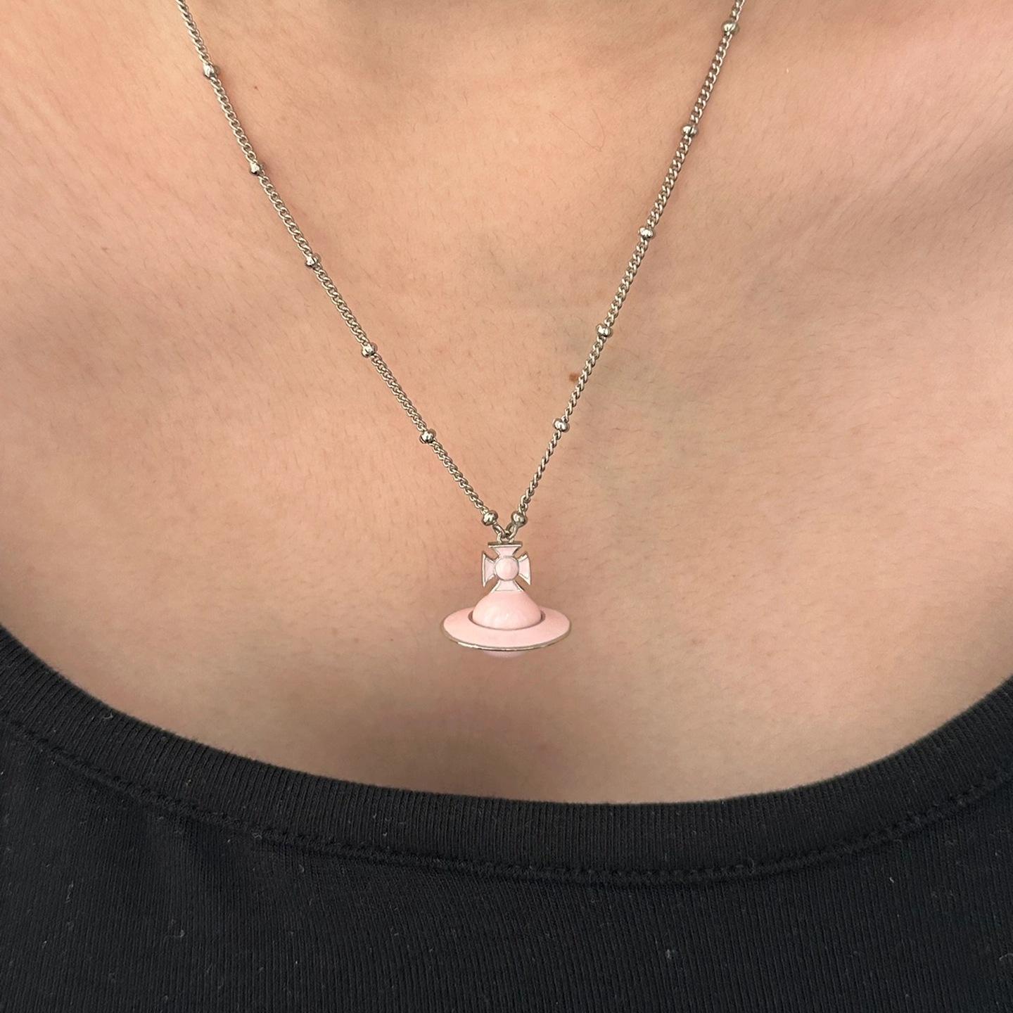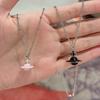 Collar con colgante de Saturno tridimensional con esmalte de gota rosa dulce para mujer, diseño de lujo ligero y sencillo con cadena de clavícula de acero de titanio