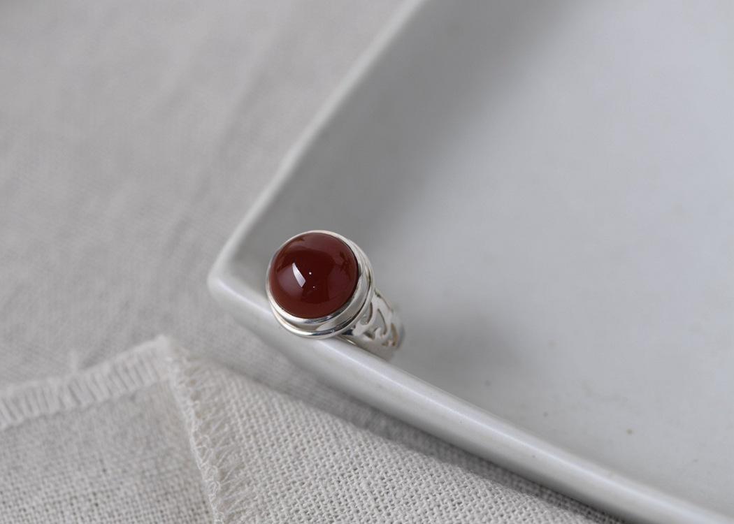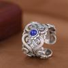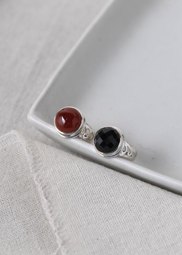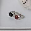 Anillo de Plata S925 con Ágata Roja Incrustada Rey Ciervo Dorado Anillo de Plata al por Mayor para Mujer Ágata Negra Facetada Estilo Chino