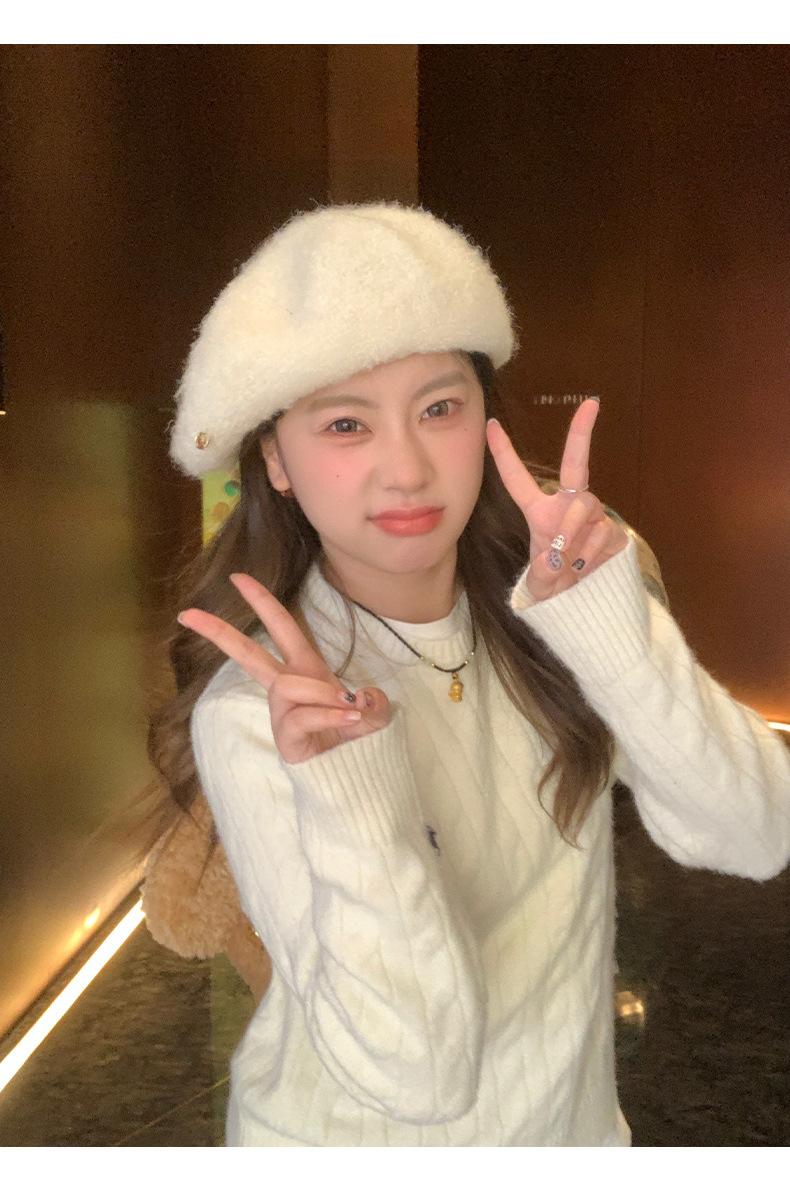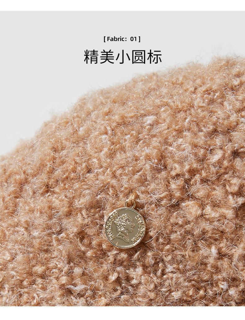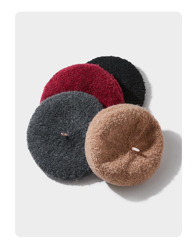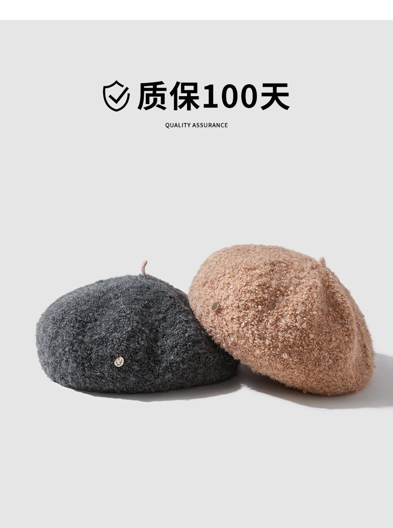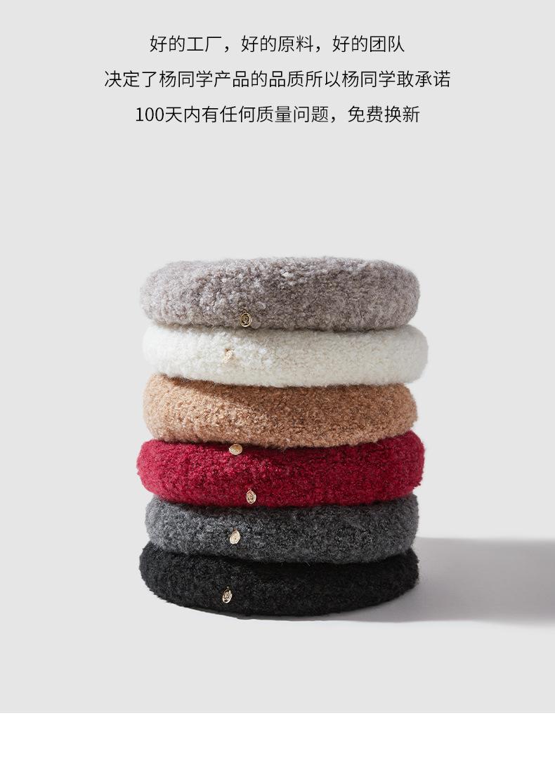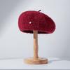 Yang ji.com lana de oveja roja logo redondo boina de pintor que hace que la cara se vea pequeña boina coreana que combina con todo sombrero de repartidor de noticias entrega de una pieza