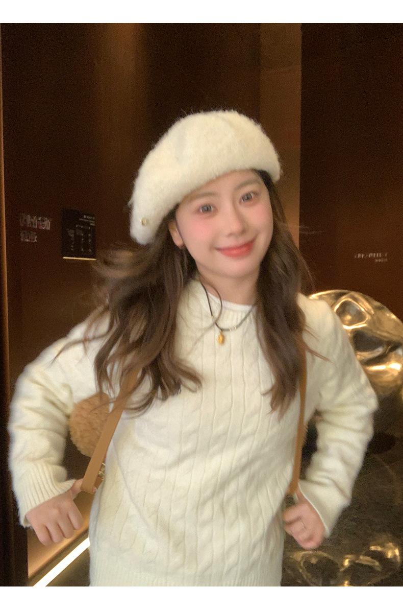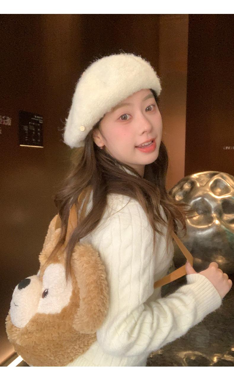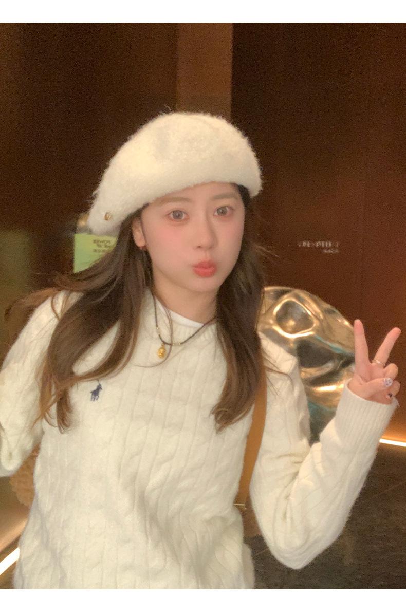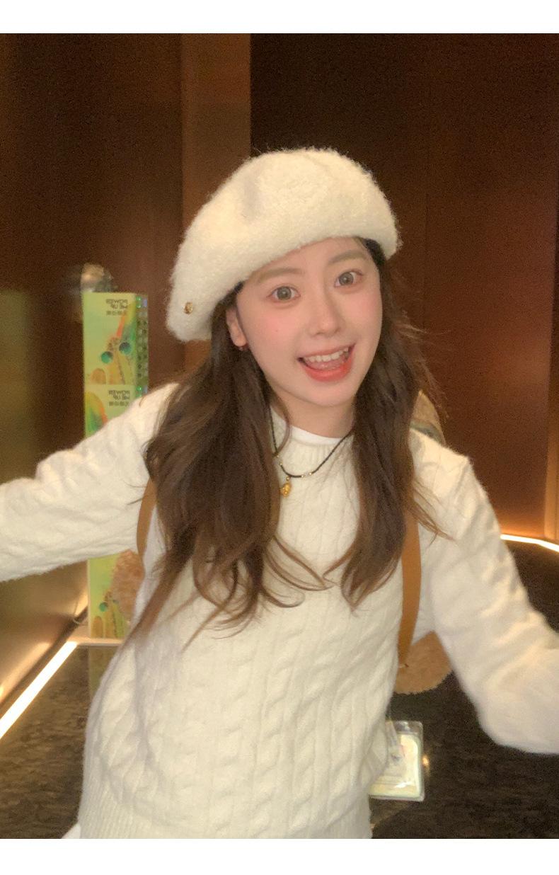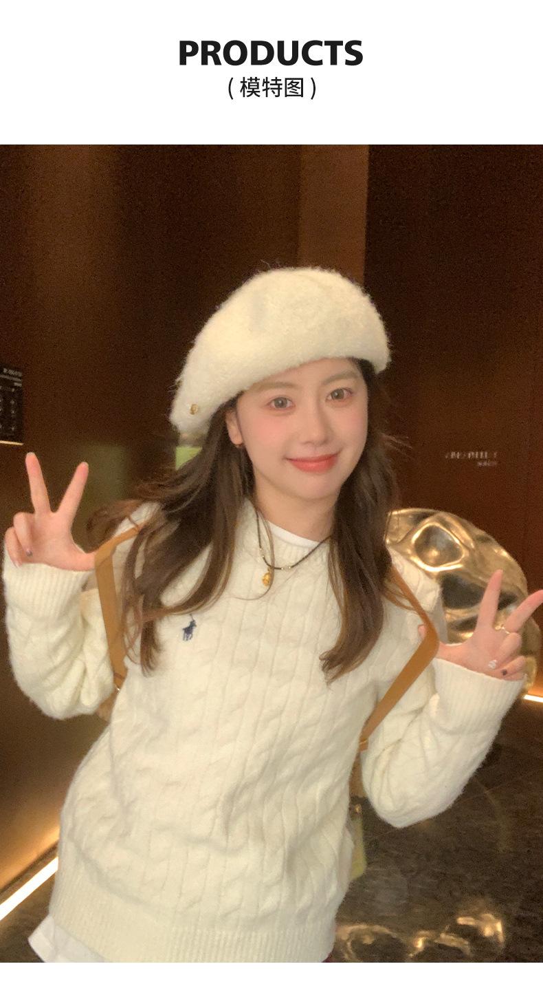 Yang ji.com lana de oveja roja logo redondo boina de pintor que hace que la cara se vea pequeña boina coreana que combina con todo sombrero de repartidor de noticias entrega de una pieza