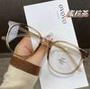 Gafas de estilo coreano retro redondas de montura grande para mujer, cara lisa, pequeñas, a juego, para miopía, TR90, montura de gafas de cara grande, esmeriladas