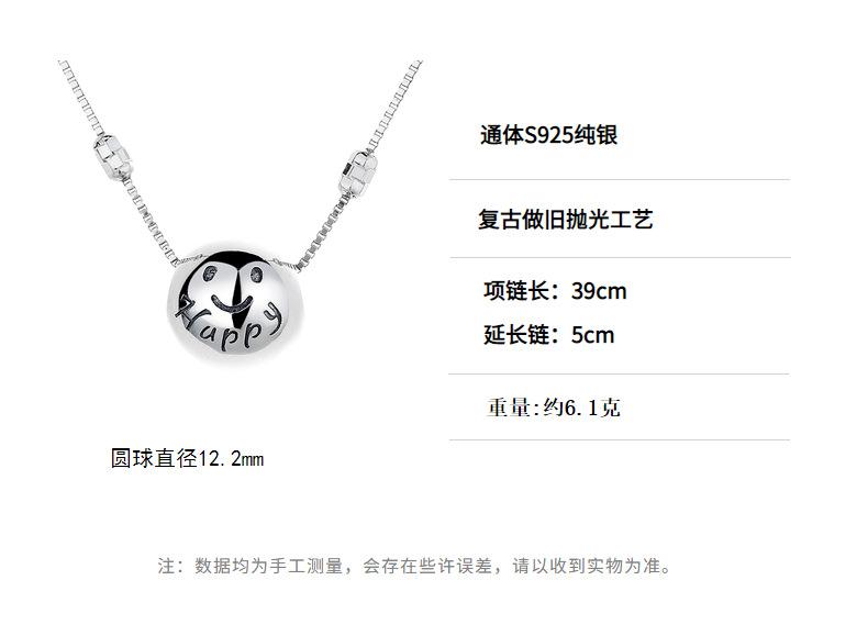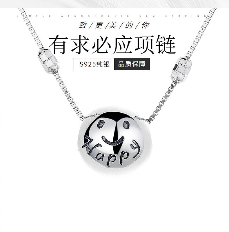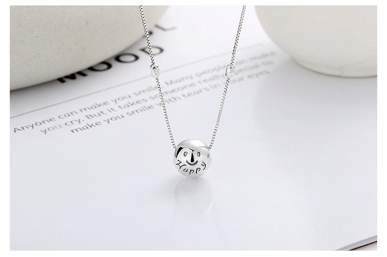 Collar de cadena de clavícula con colgante de cara sonriente feliz estilo coreano de plata esterlina S925 de Yunchaoxuan
