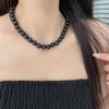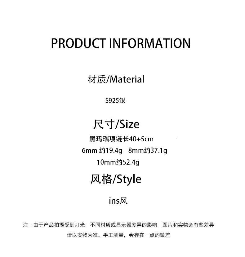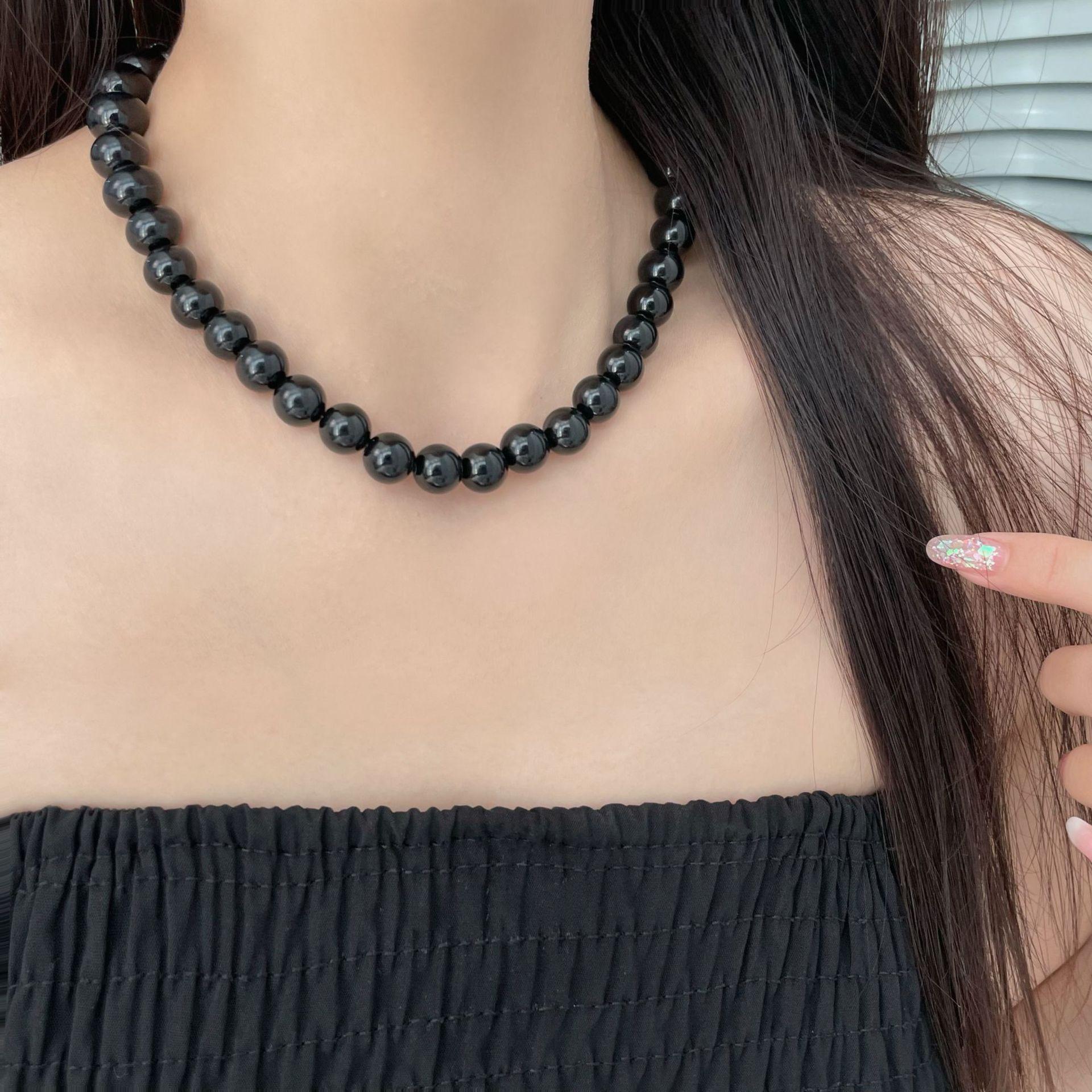Collar de Plata Esterlina S925 Ágata Negra 7A Estilo Fiebre Igual Moda Nicho Versátil con Cuentas Cadena Clavícula Venta al por Mayor