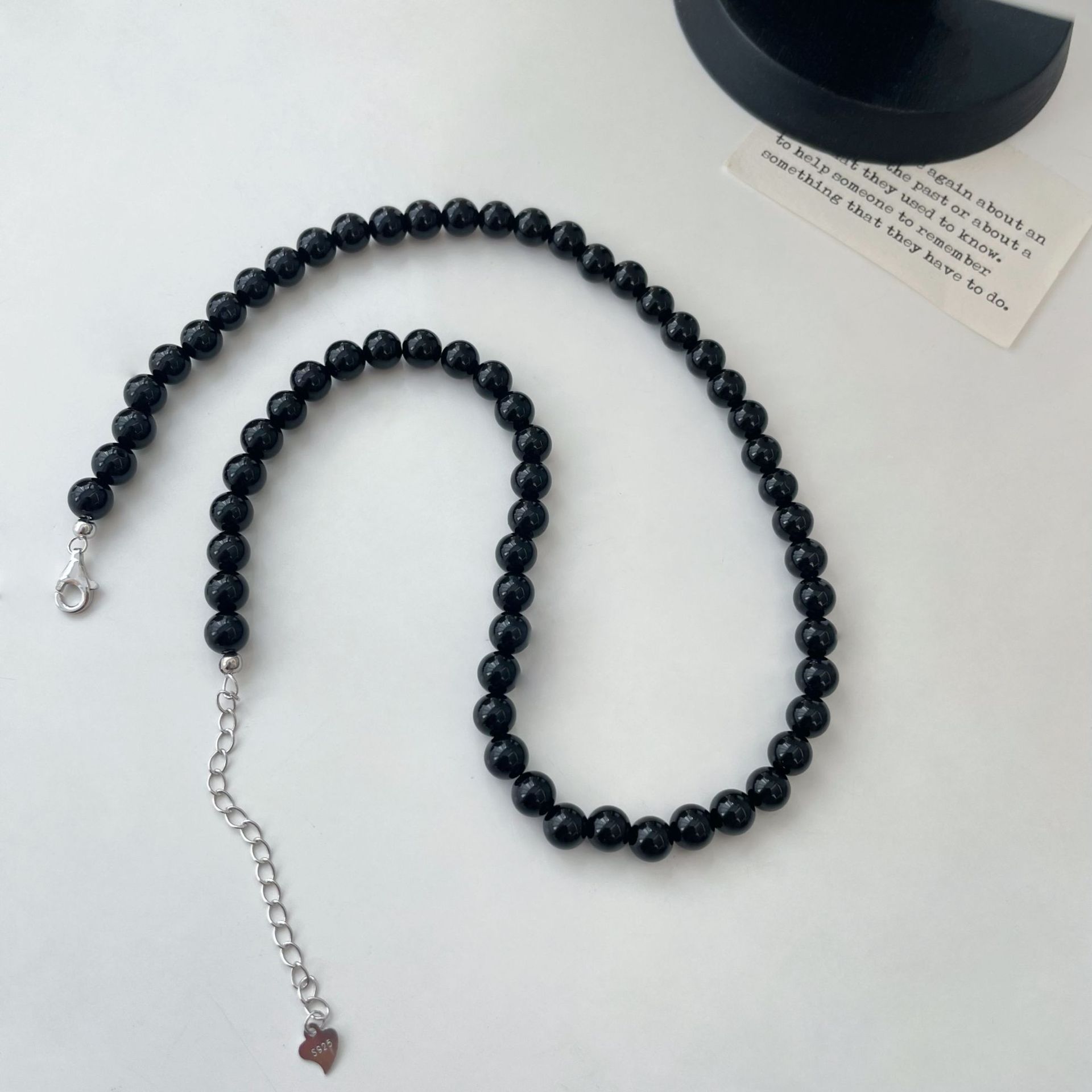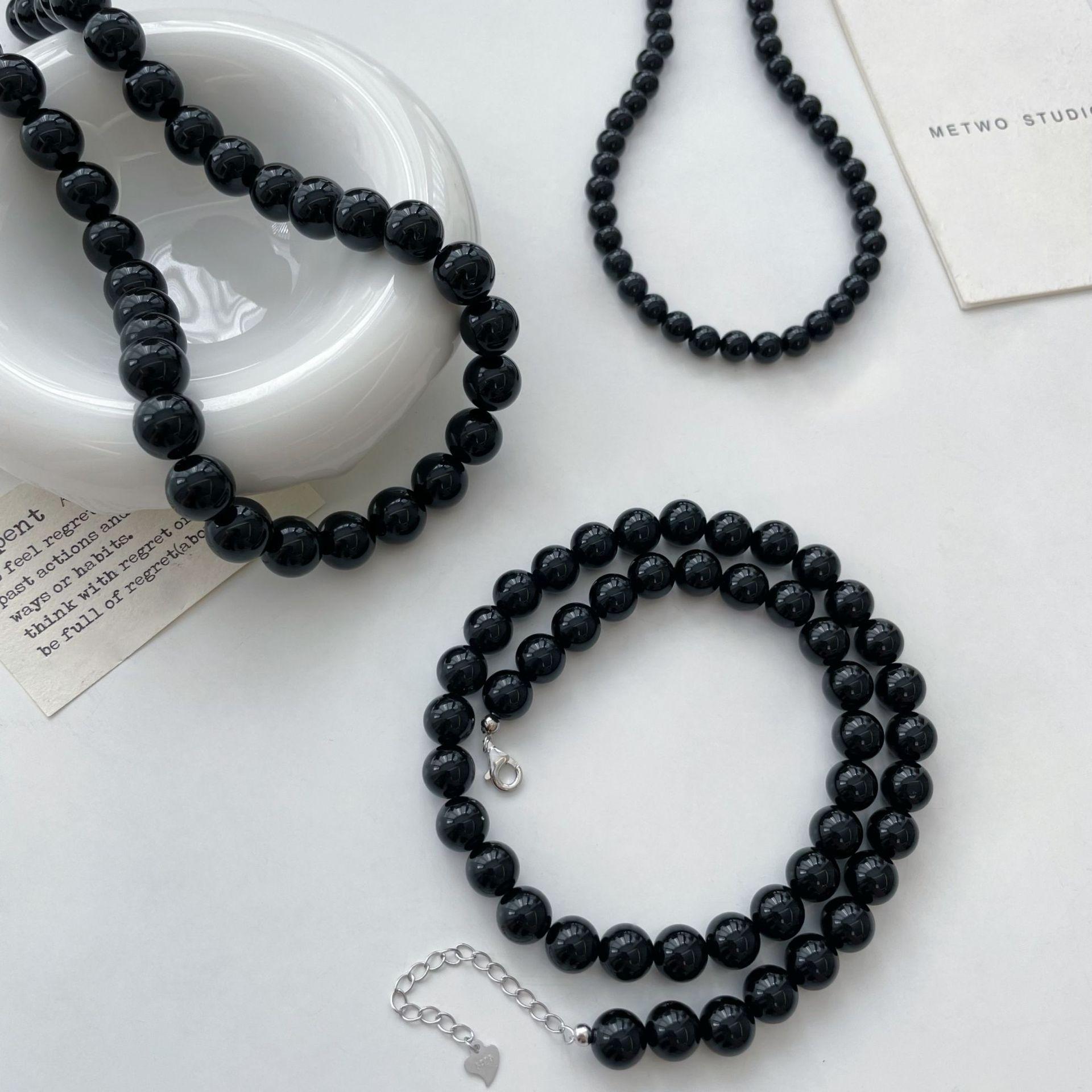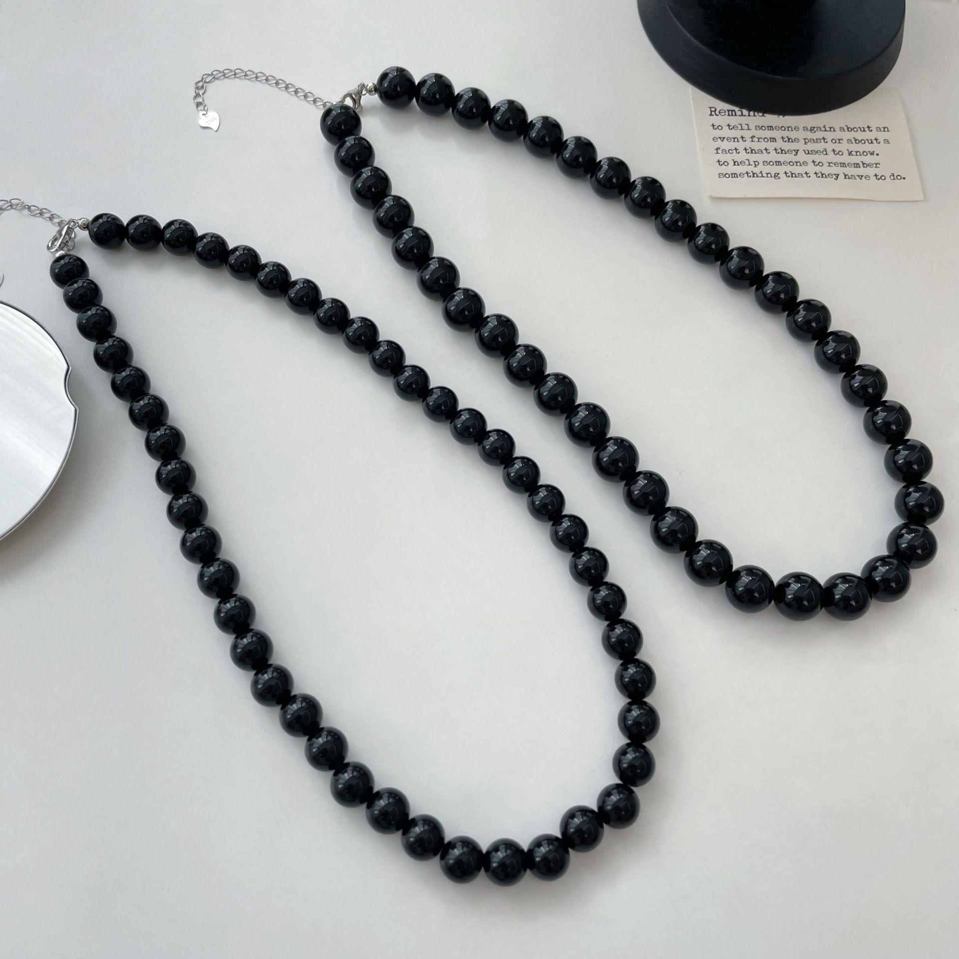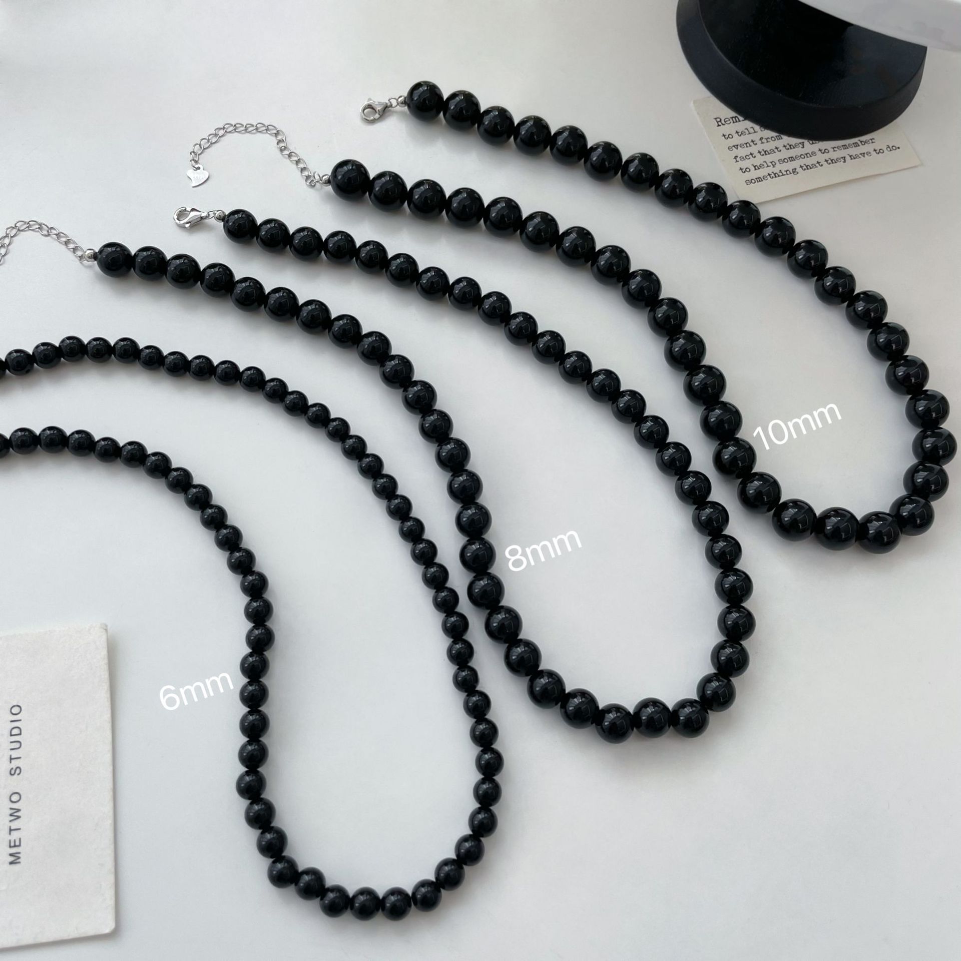 4mm black agate necklace (lobster clasp), 6mm black agate necklace (lobster clasp), 8mm black agate necklace (...