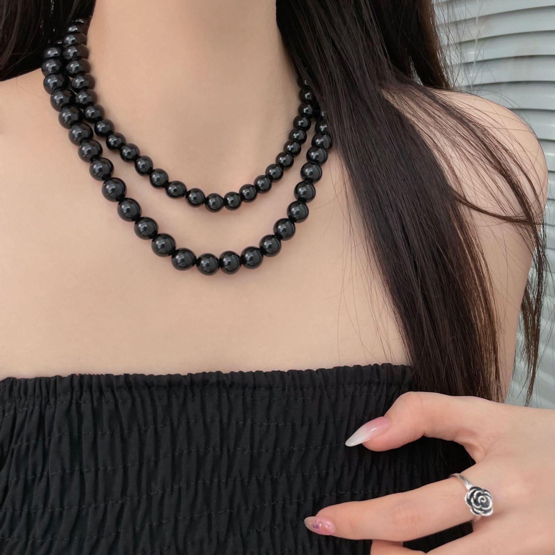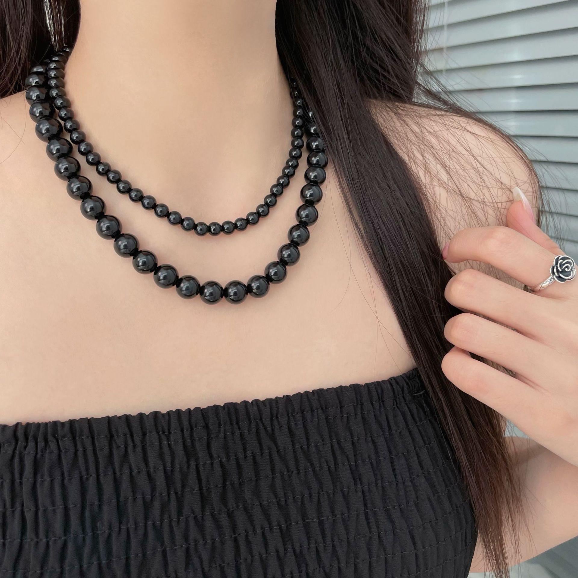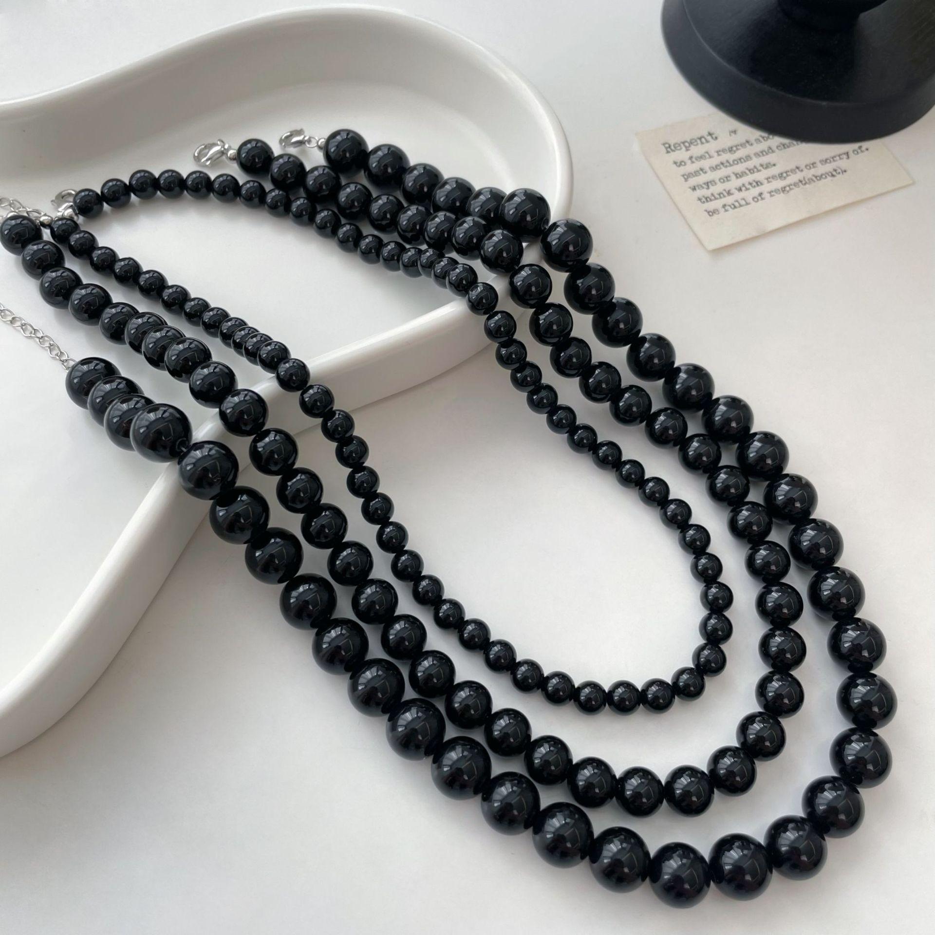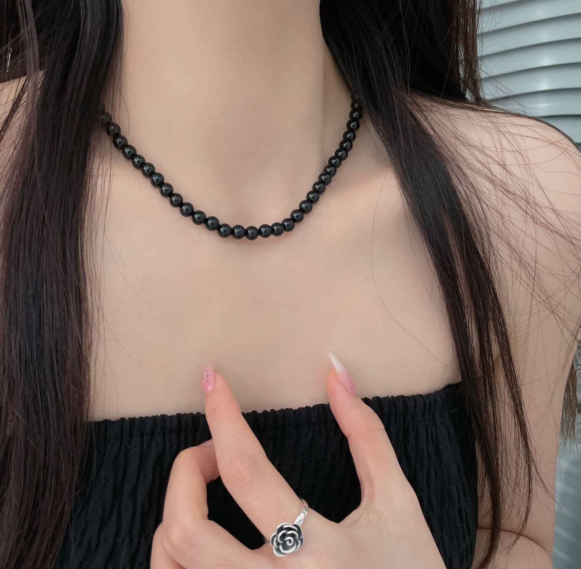 4mm black agate necklace (lobster clasp), 6mm black agate necklace (lobster clasp), 8mm black agate necklace (...