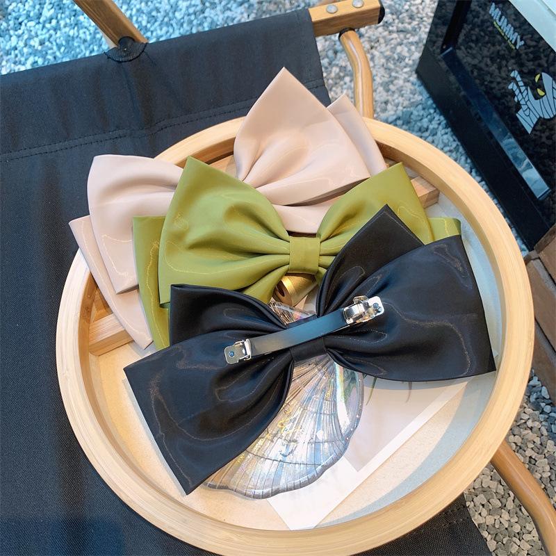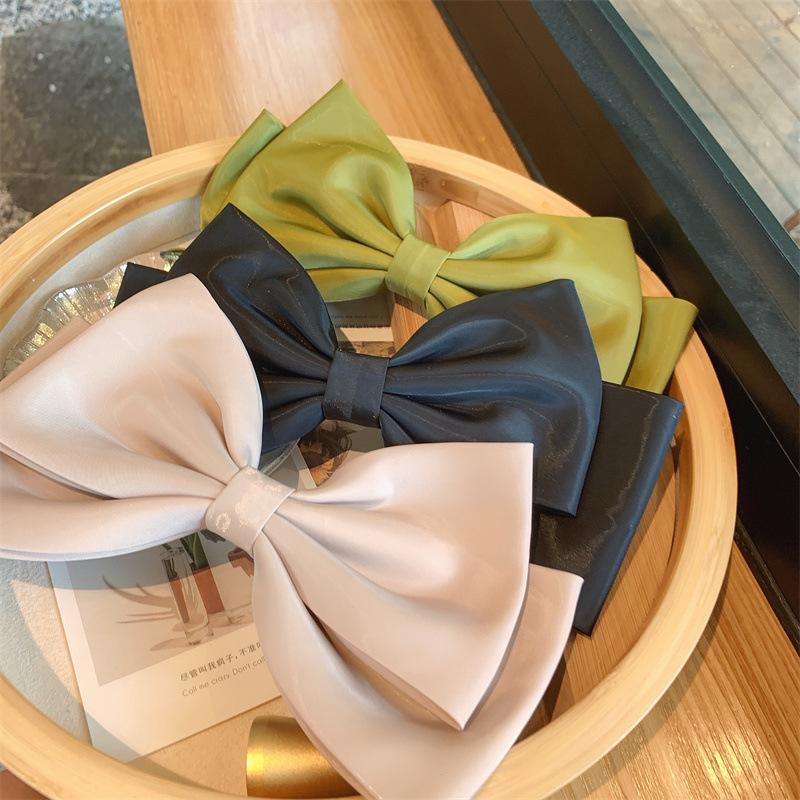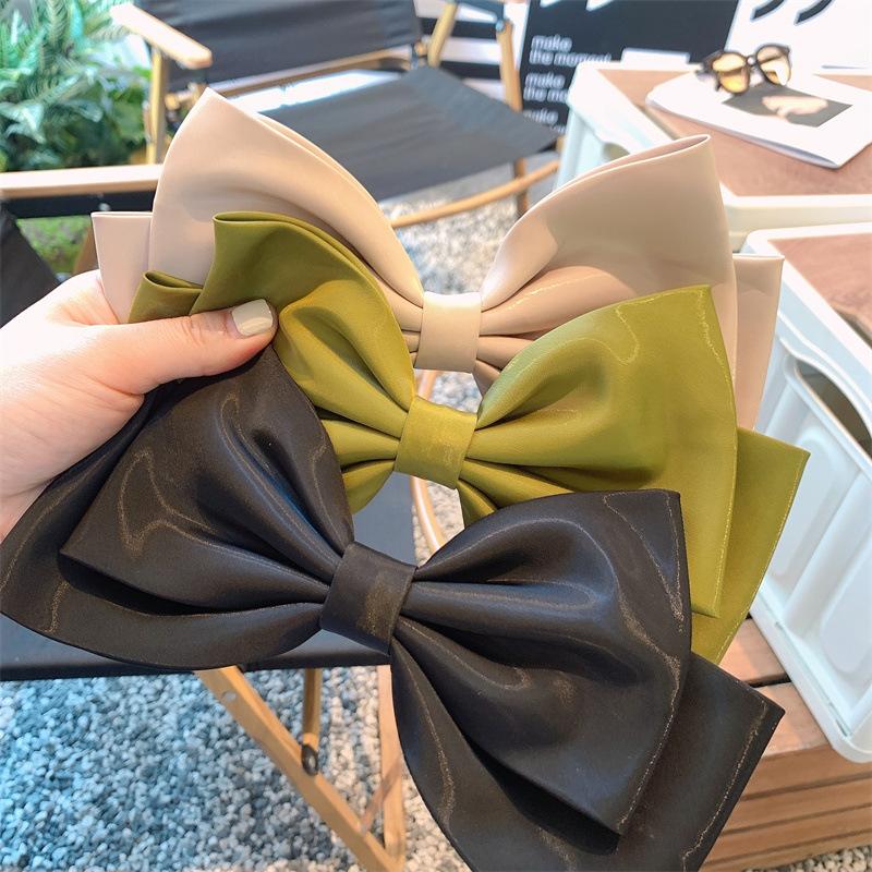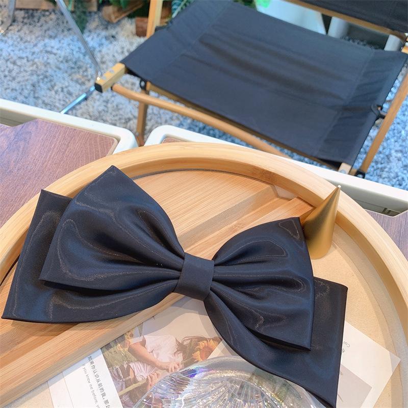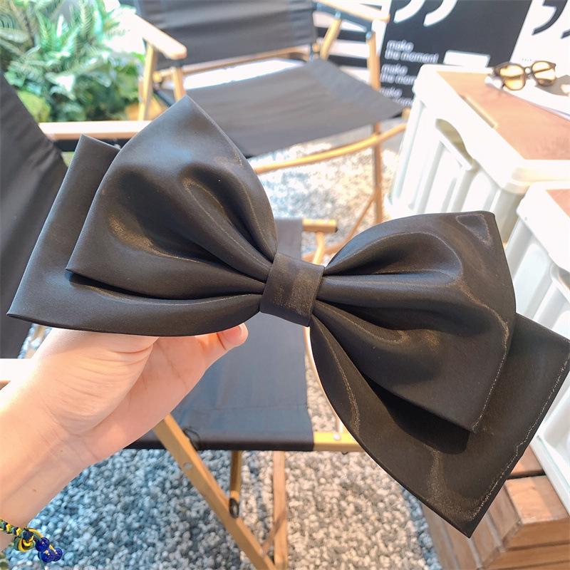 Lujo ligero hecho a mano satén negro diadema lazo extragrande coleta lazo tridimensional accesorios elegantes para el cabello pasador clip superior