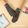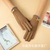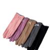 Guantes cálidos de otoño e invierno para mujer, para conducir, ciclismo al aire libre, coche eléctrico, resistentes al frío, forrados de vellón, bonitos guantes de estilo coreano con lazo para mujer.