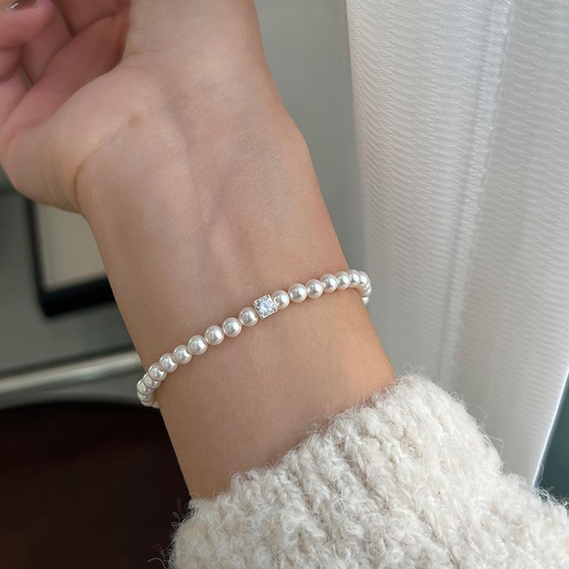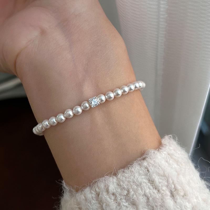 Pulsera de circonita y perla retro francesa para mujer, ligera, de lujo, de alta gama, exquisita, a la moda, elegante, combinable con todo.