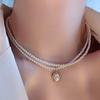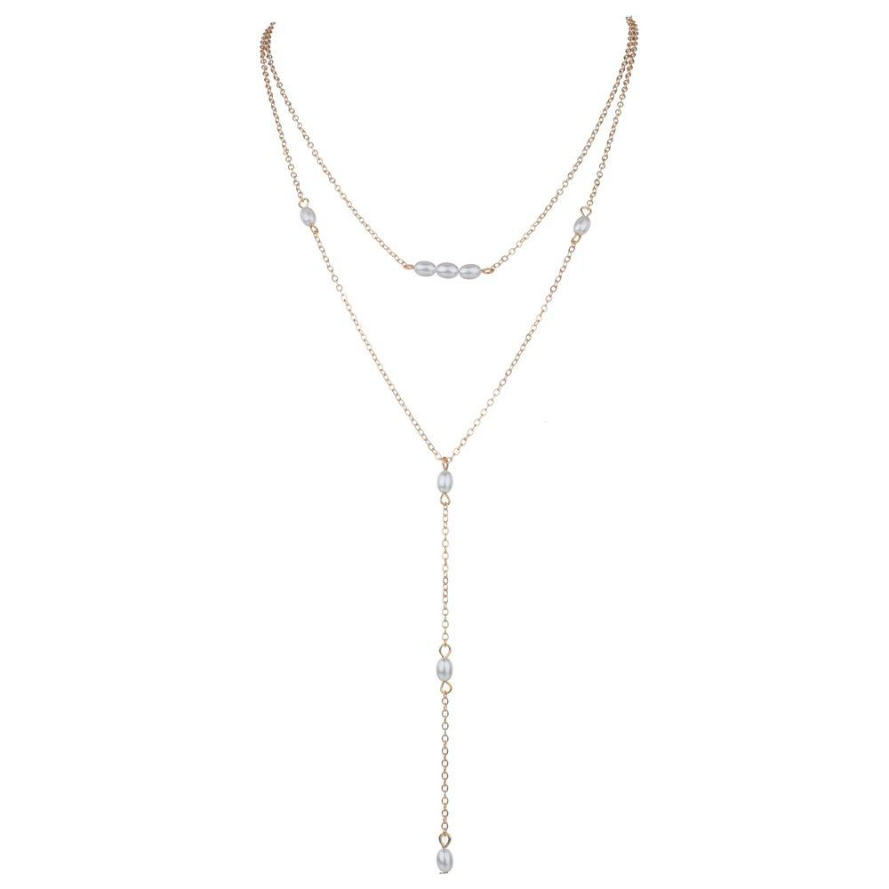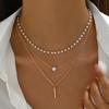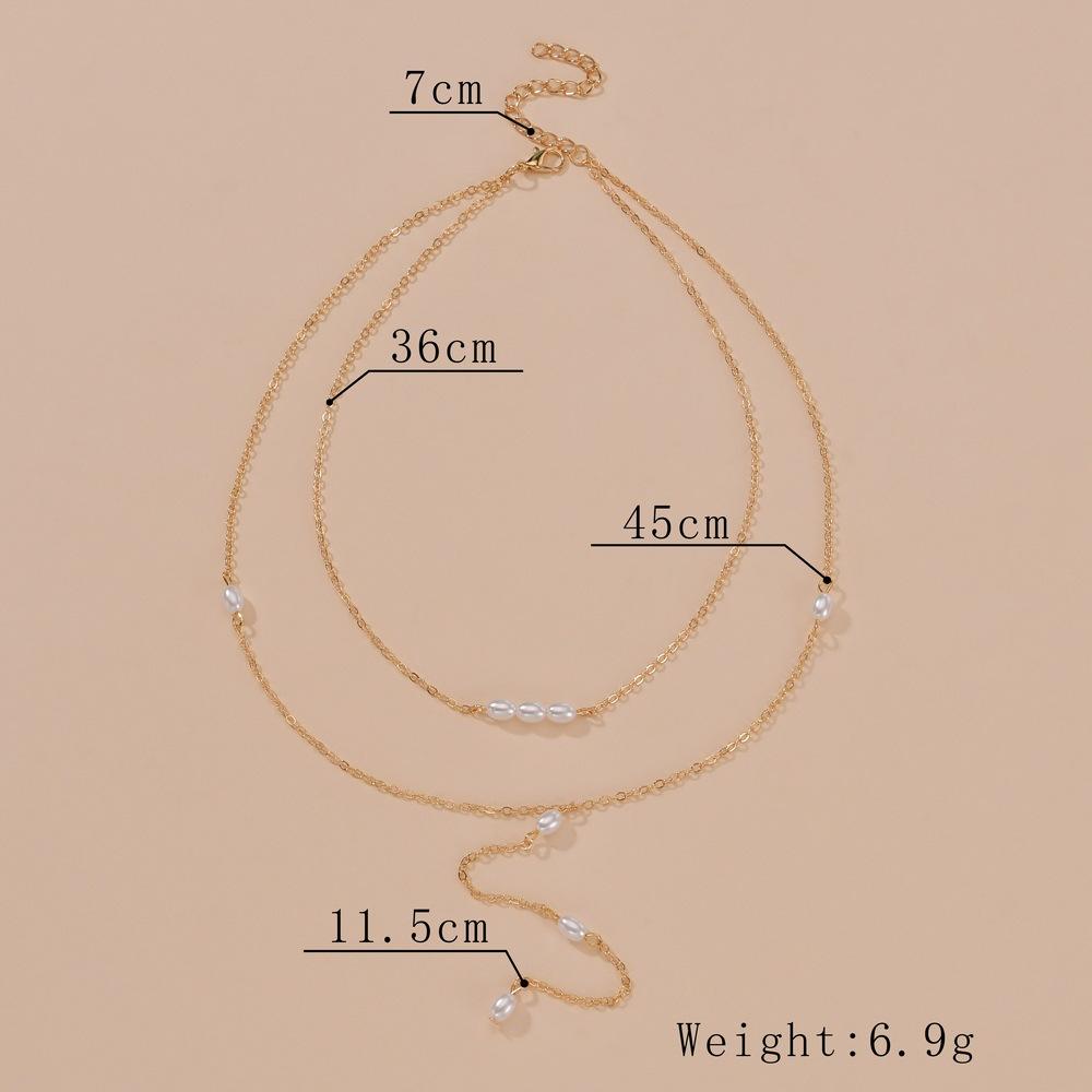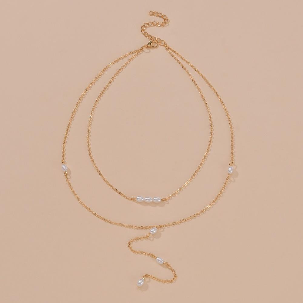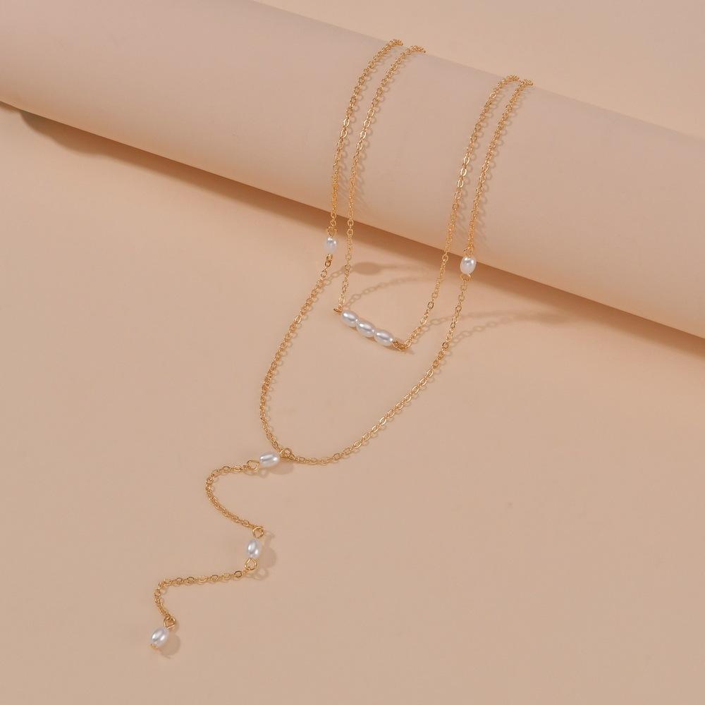Collar largo con temperamento de perla de moda europea y americana, joyería simple de metal, cadena de clavícula doble ajustable
