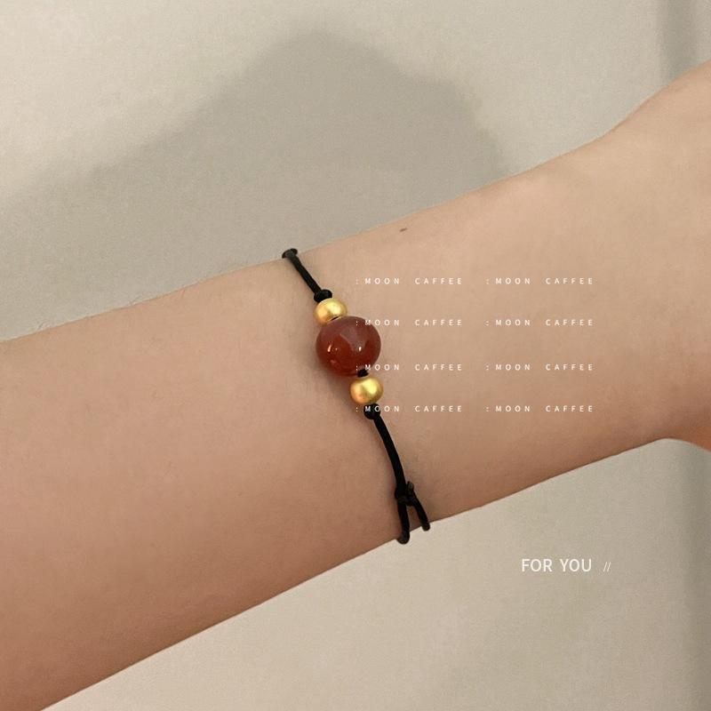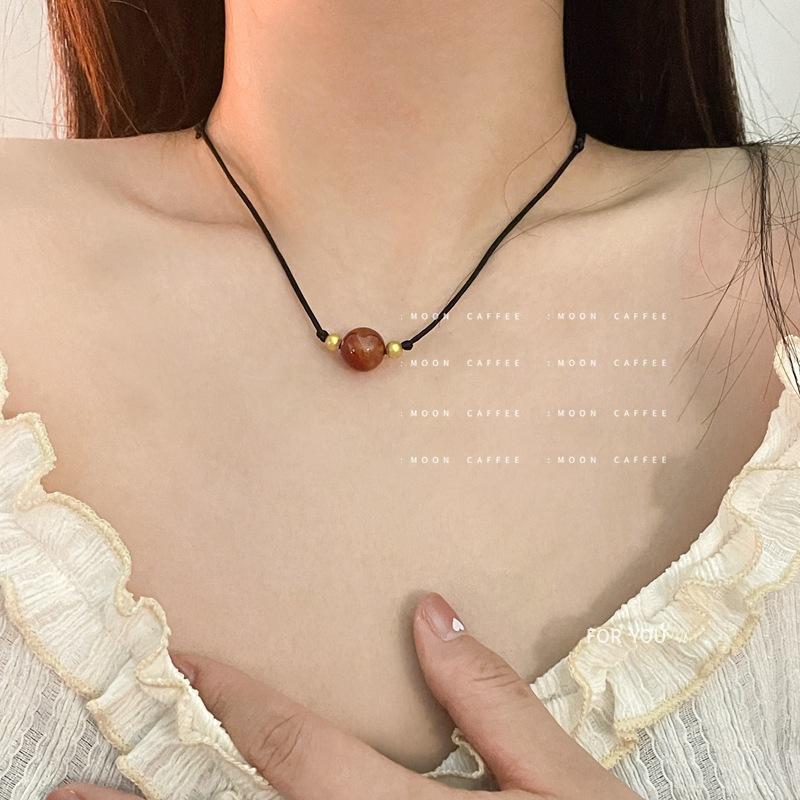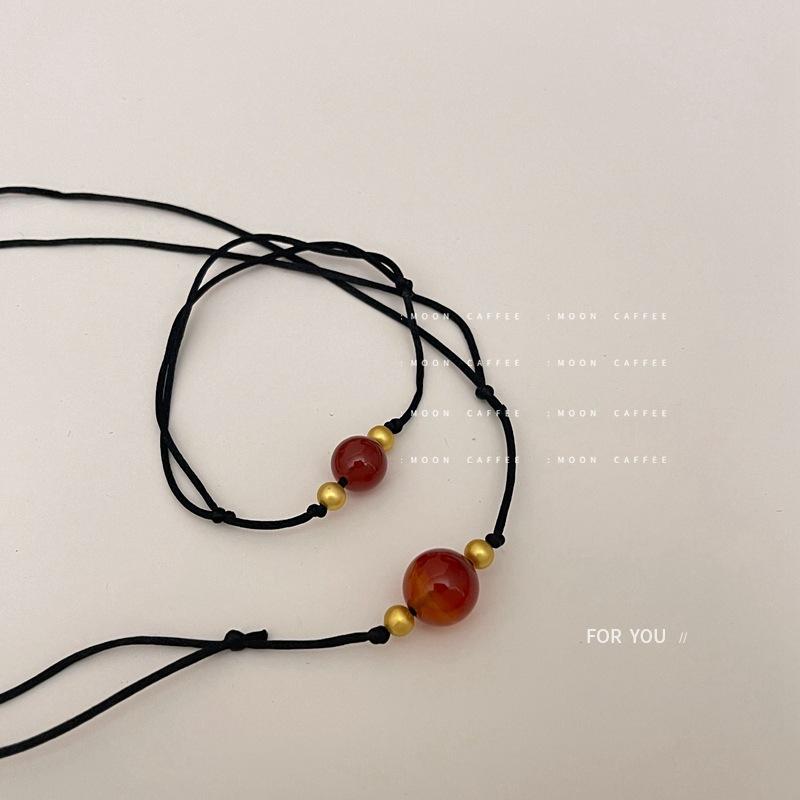 Un Colgante de Ágata Roja de Frijol Rojo Extraíble de Tamaño Ajustable Retro Nicho Collar Pulsera para Mujer