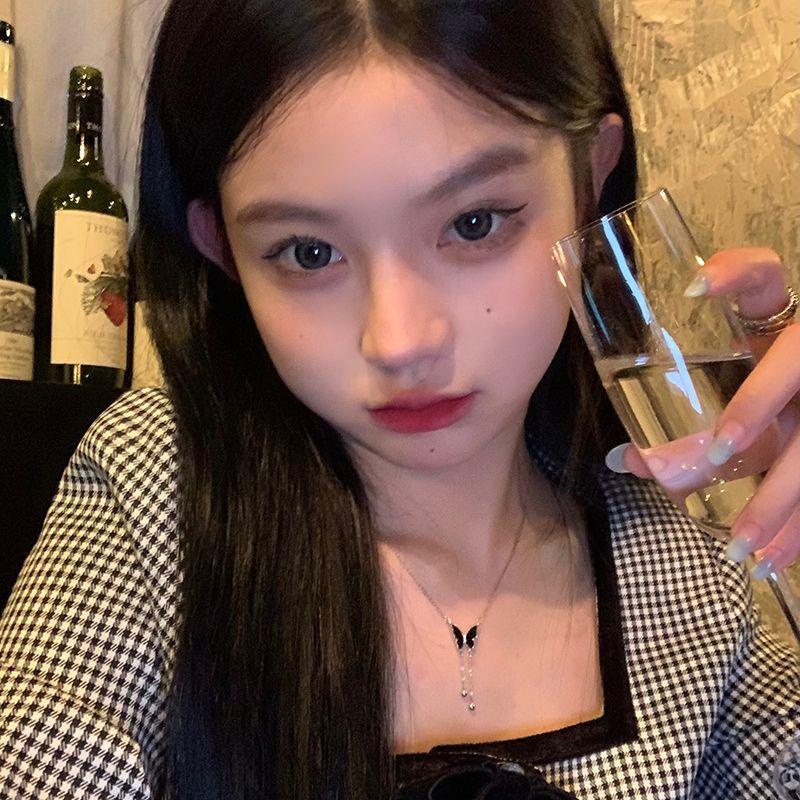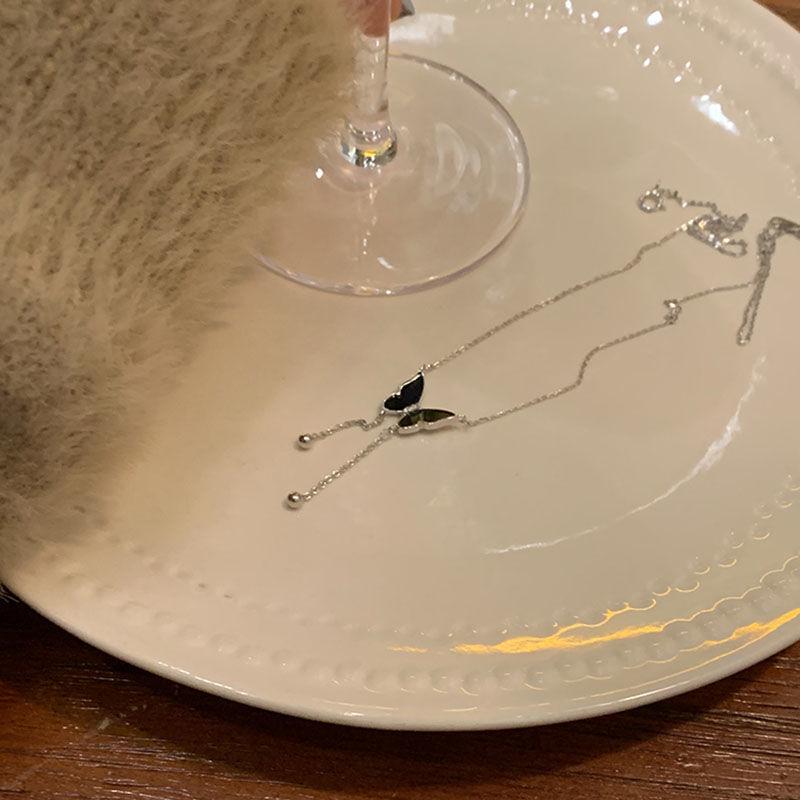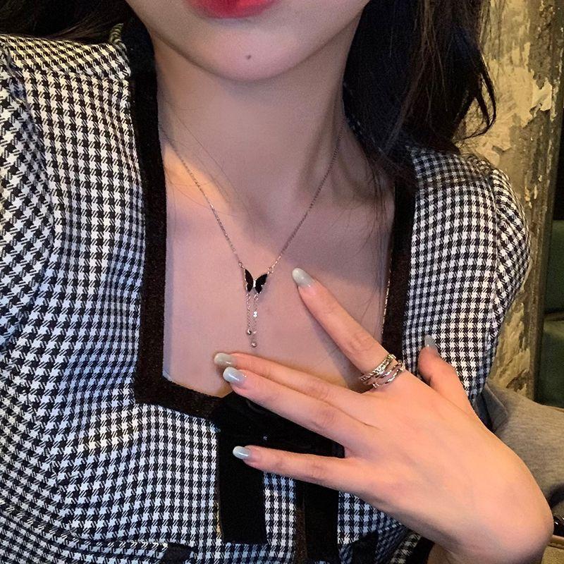 Dongju - Collar con colgante de mariposa y borla negra, cadena de clavícula de nicho de lujo ligera para otoño e invierno, versátil, nuevo para baño