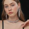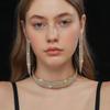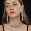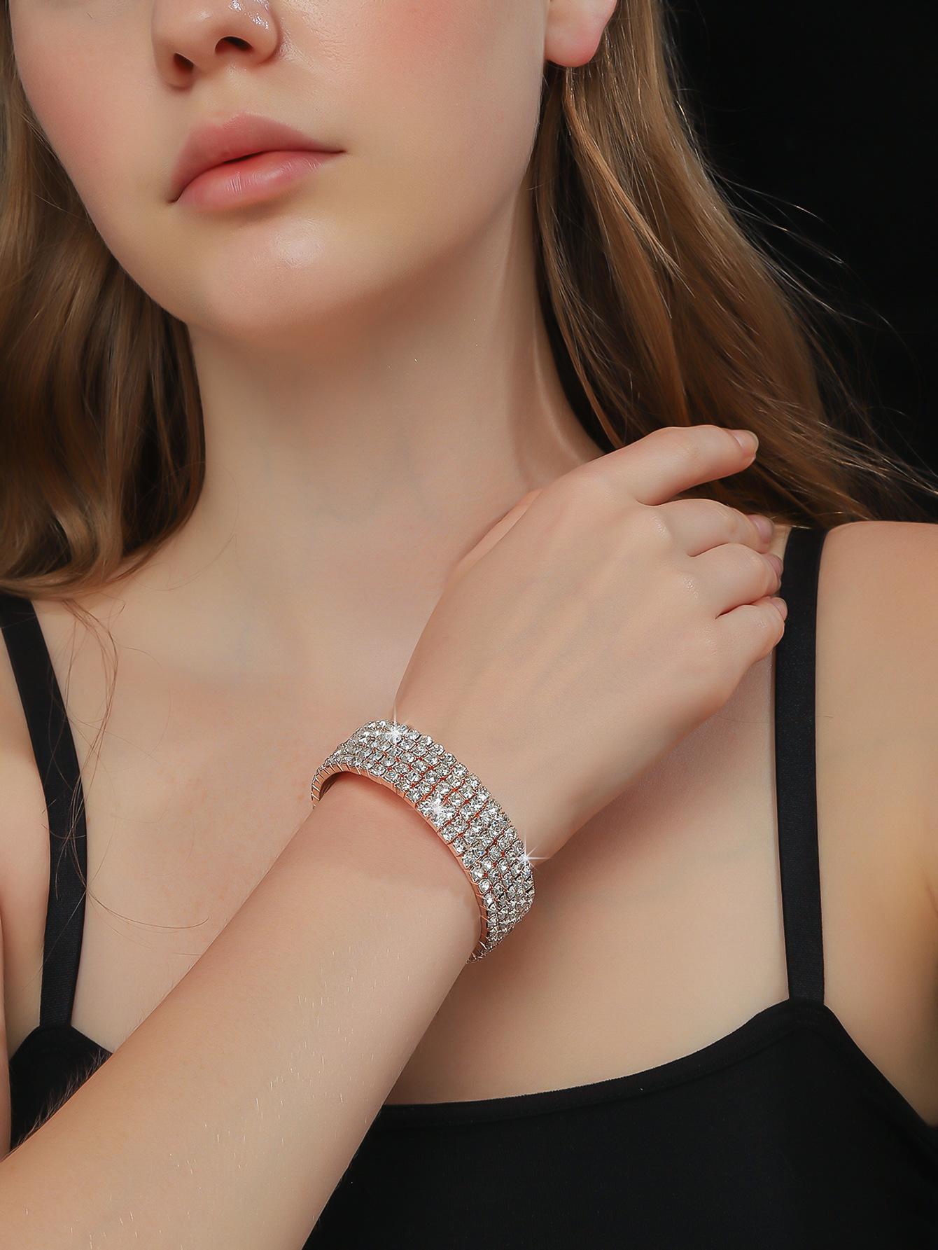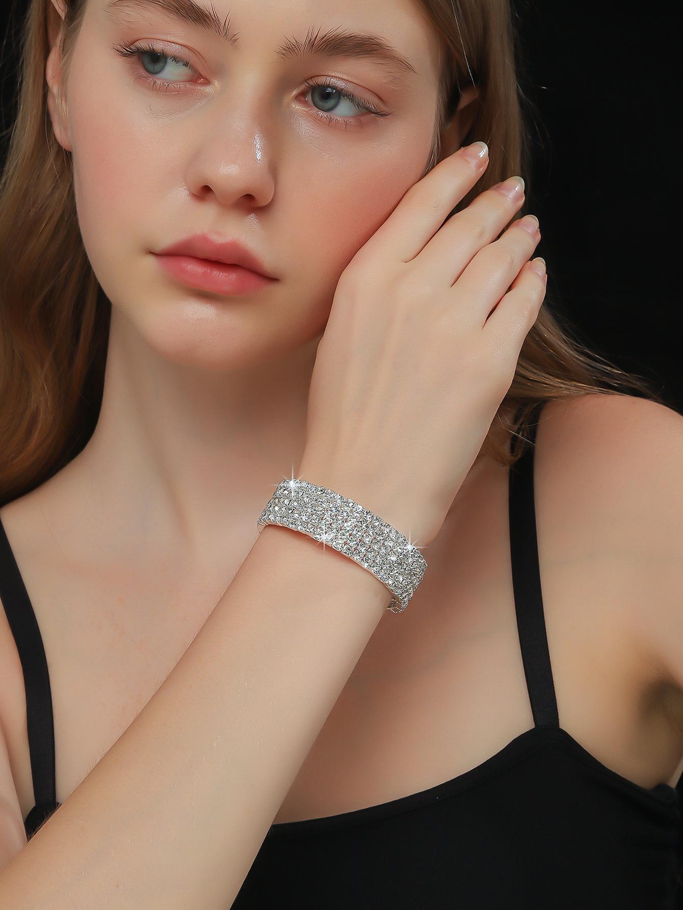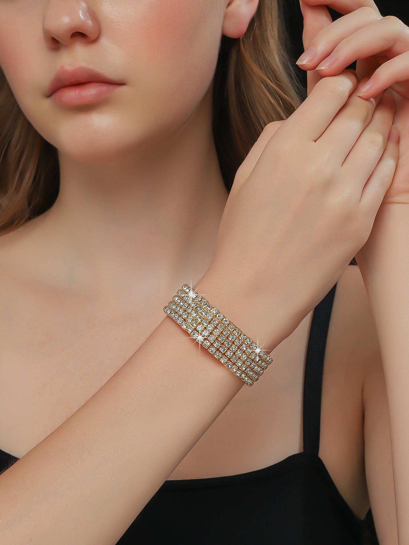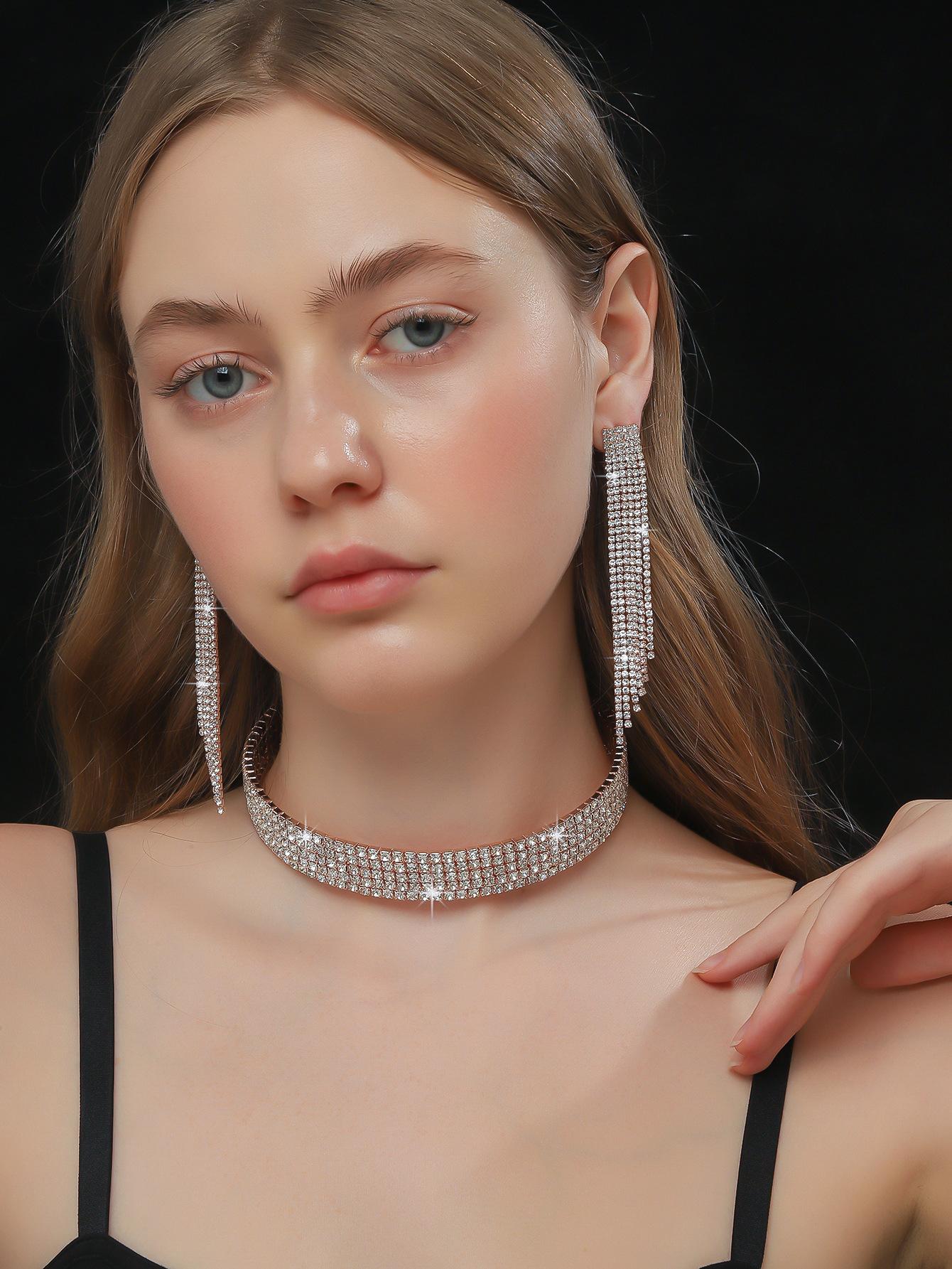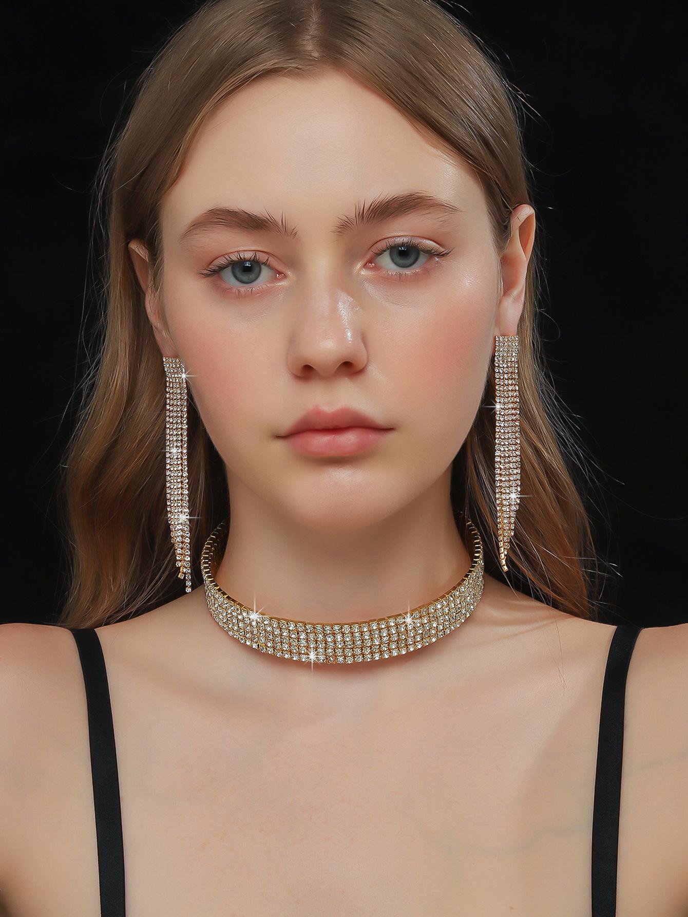 Conjunto de 3 piezas de collar, pendientes y pulsera con diamantes de imitación de varias filas, joyería transfronteriza europea y americana, accesorios para vestido de novia.