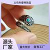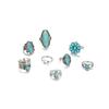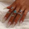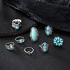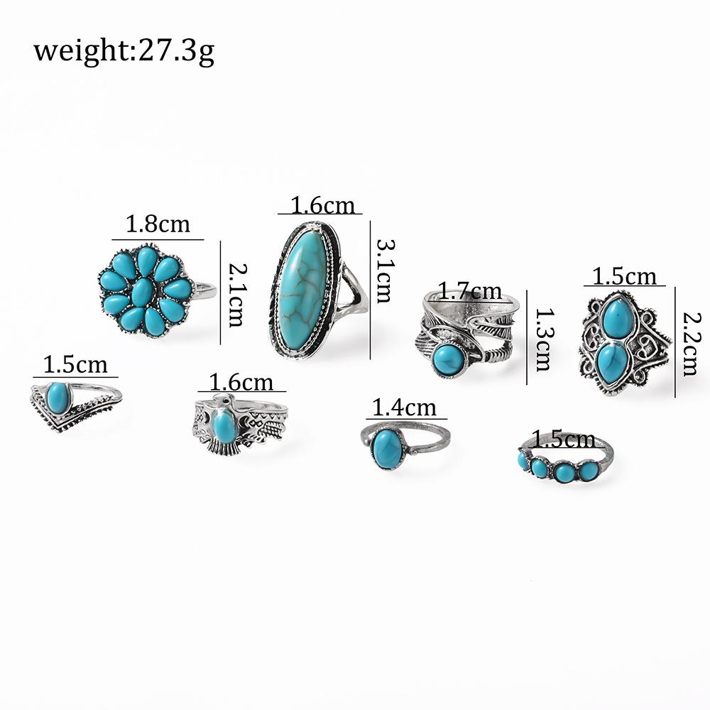 Anillo al por mayor de 8 piezas de estilo bohemio de nuevo estilo transfronterizo europeo y americano con pluma de búho retro de turquesa