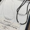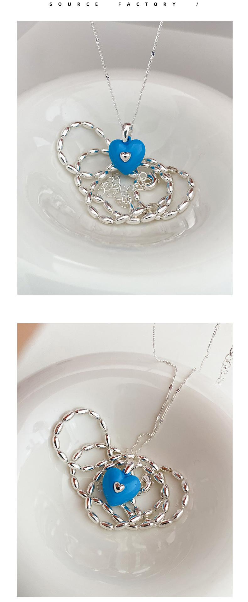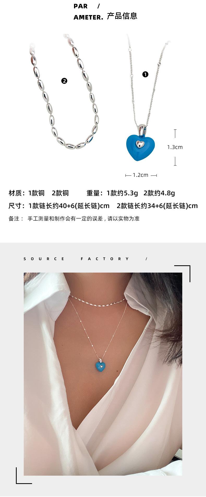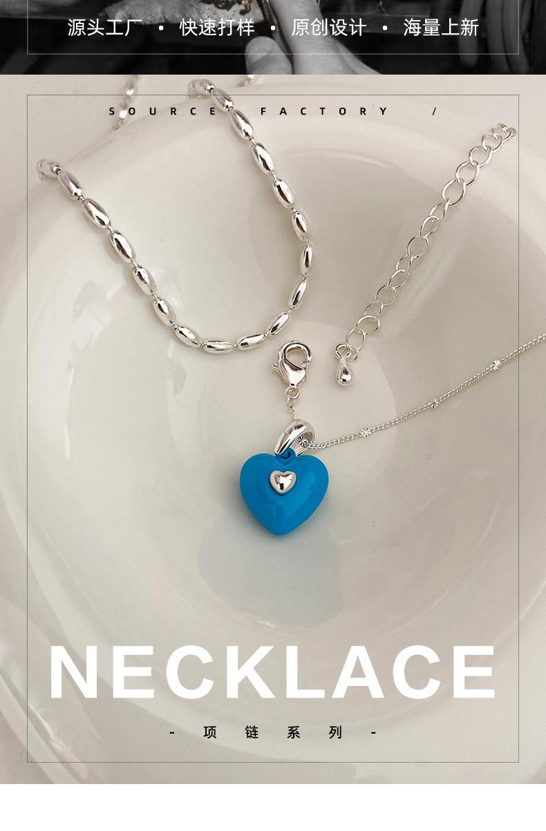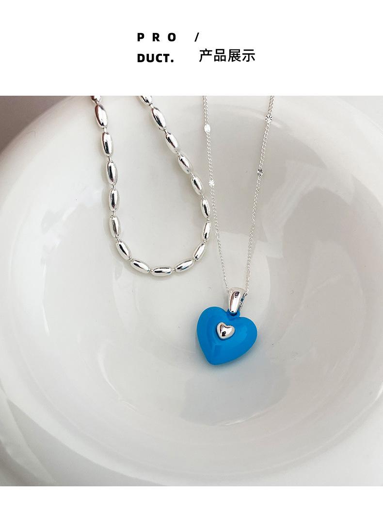 Collar de Corazón con Cuentas de Mijo Plateado con Gota de Aceite para Mujer, Nicho de Lujo Ligero Gargantilla Cadena Clavícula, Estilo Lujo Ligero