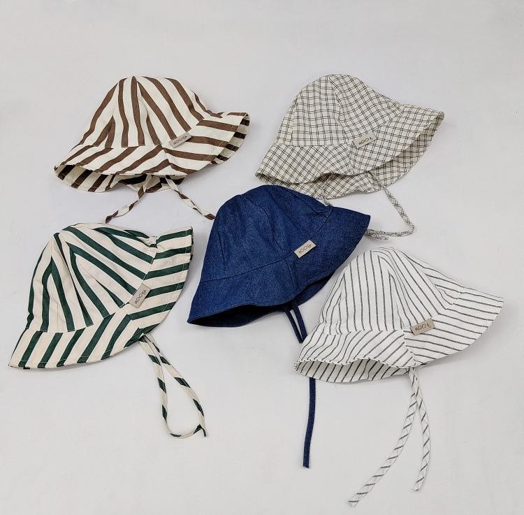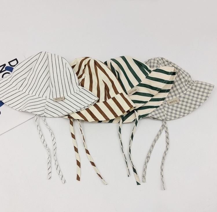 Sombrero de Pescador Rayado Fino de Primavera y Verano con Protección Solar para Bebé y Niños Pequeños para Salir Sombrero de Cubo a Cuadros