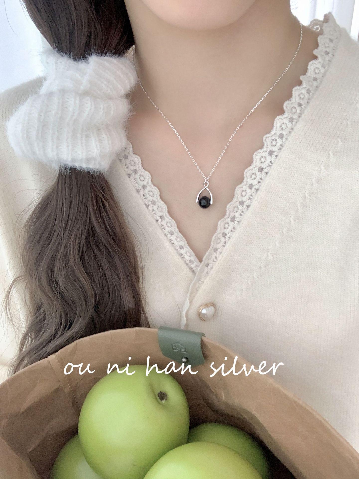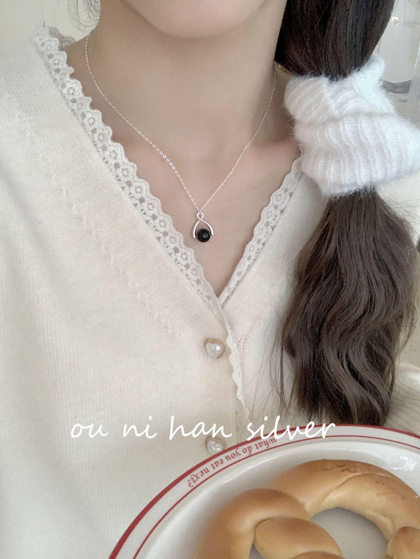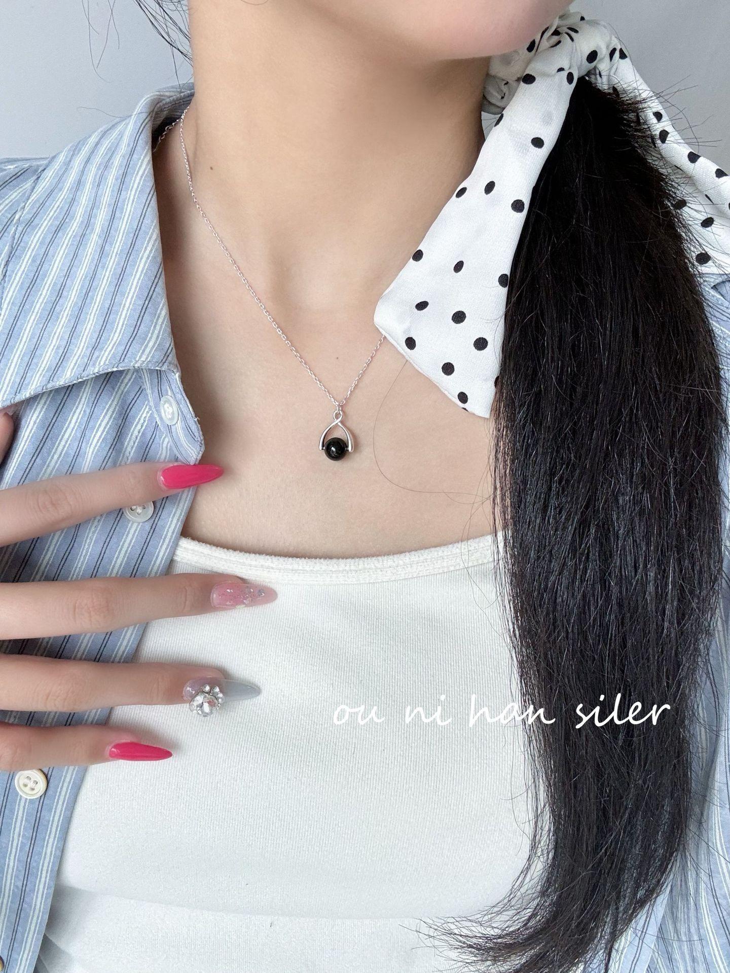 Collar Oni estilo coreano Ins para mujer, plata de ley S925, cruz de ágata negra, personalidad, nicho, cadena de clavícula de alta gama